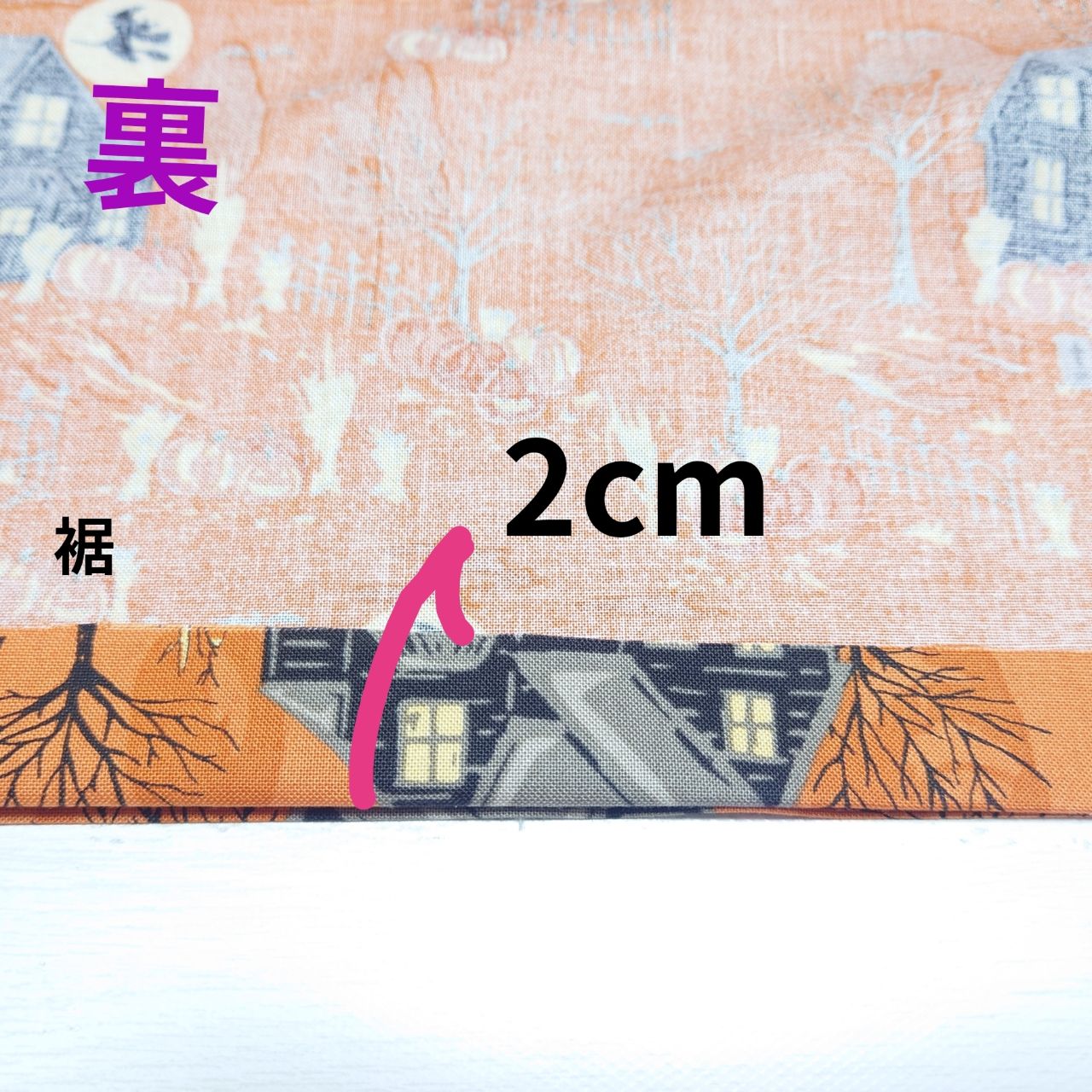⑦裾部を作ります。縫い代2cm折ります。
