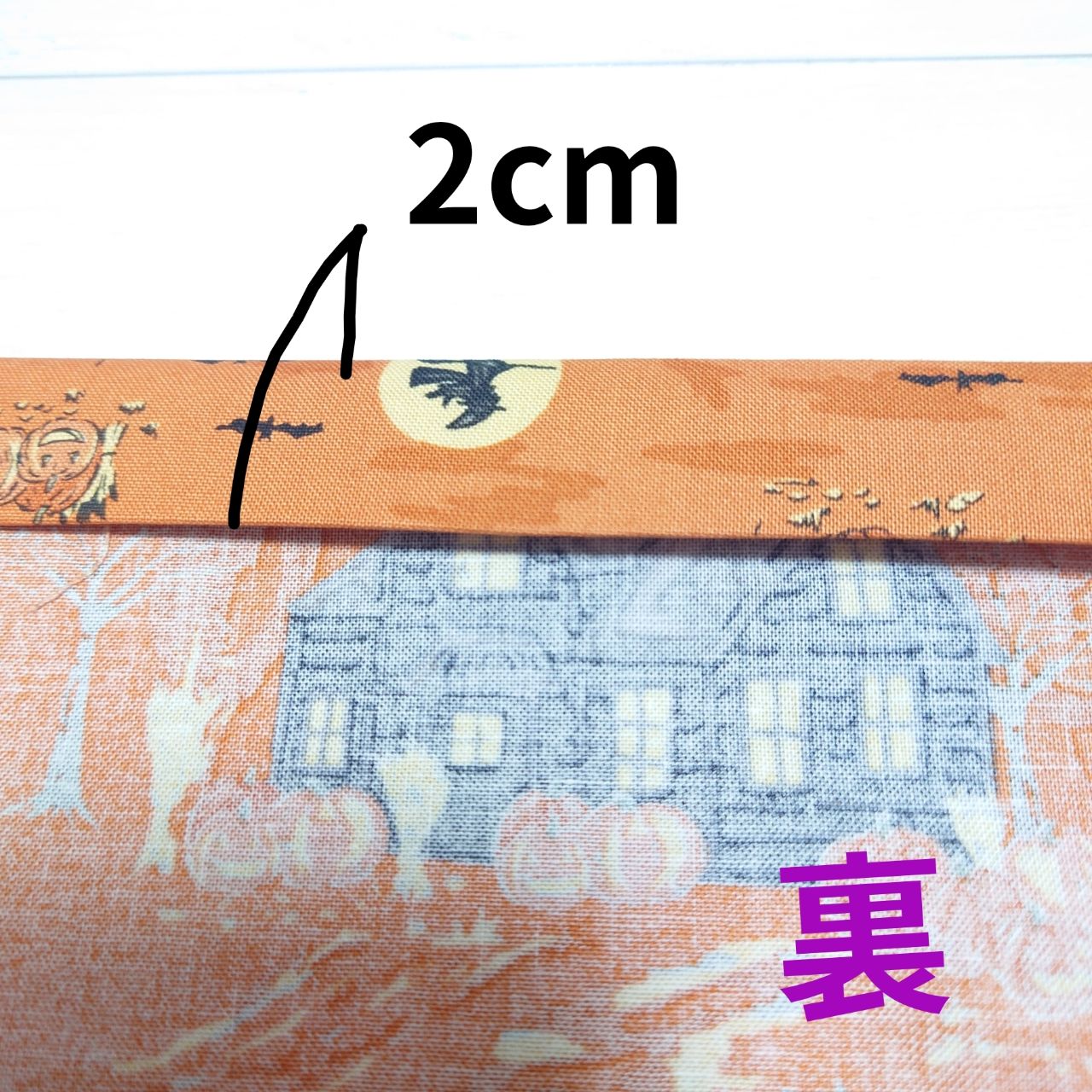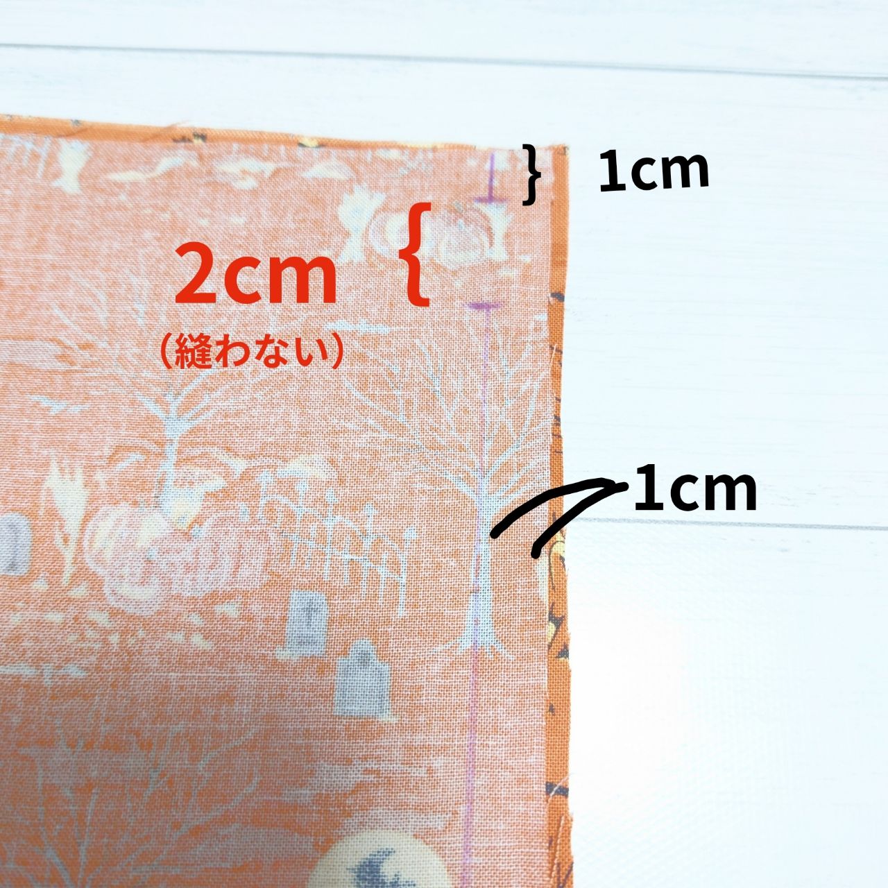 ①生地を縦47cm×横110cmで用意します。