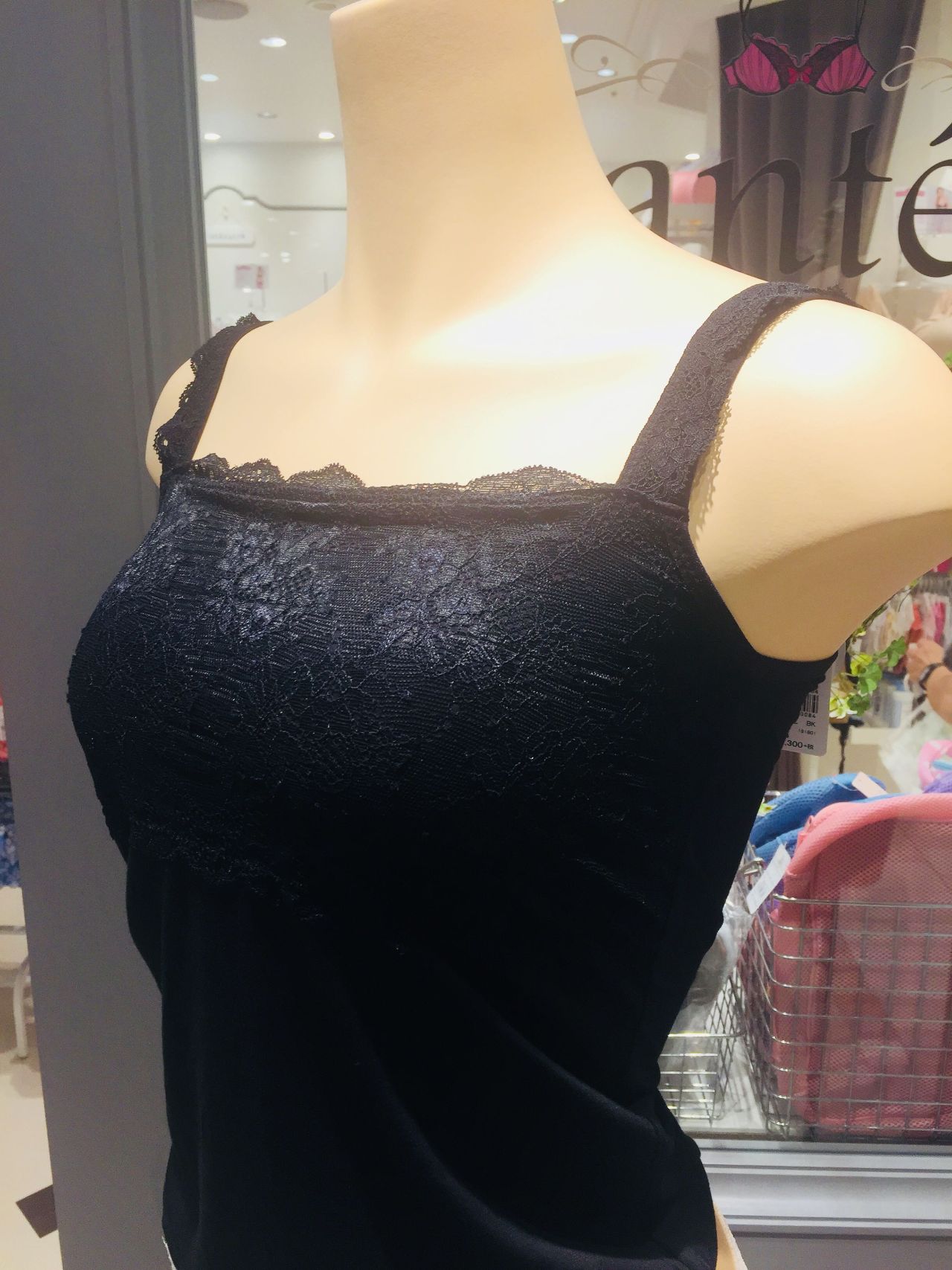 胸元がレースになっており、お洋服から見えてもオシャレなデザインとなっております(^^)