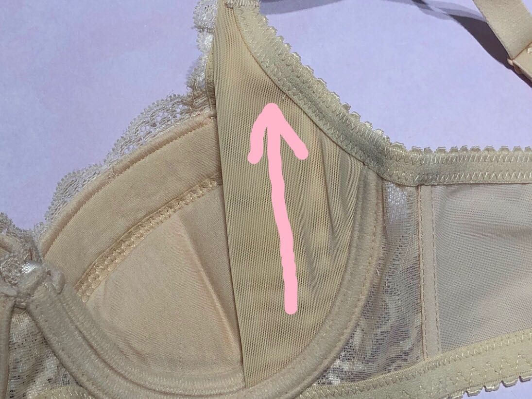 ②カップ内側のリフトアップシートがバストを引き上げサイドスッキリ&デコルテふっくら。
