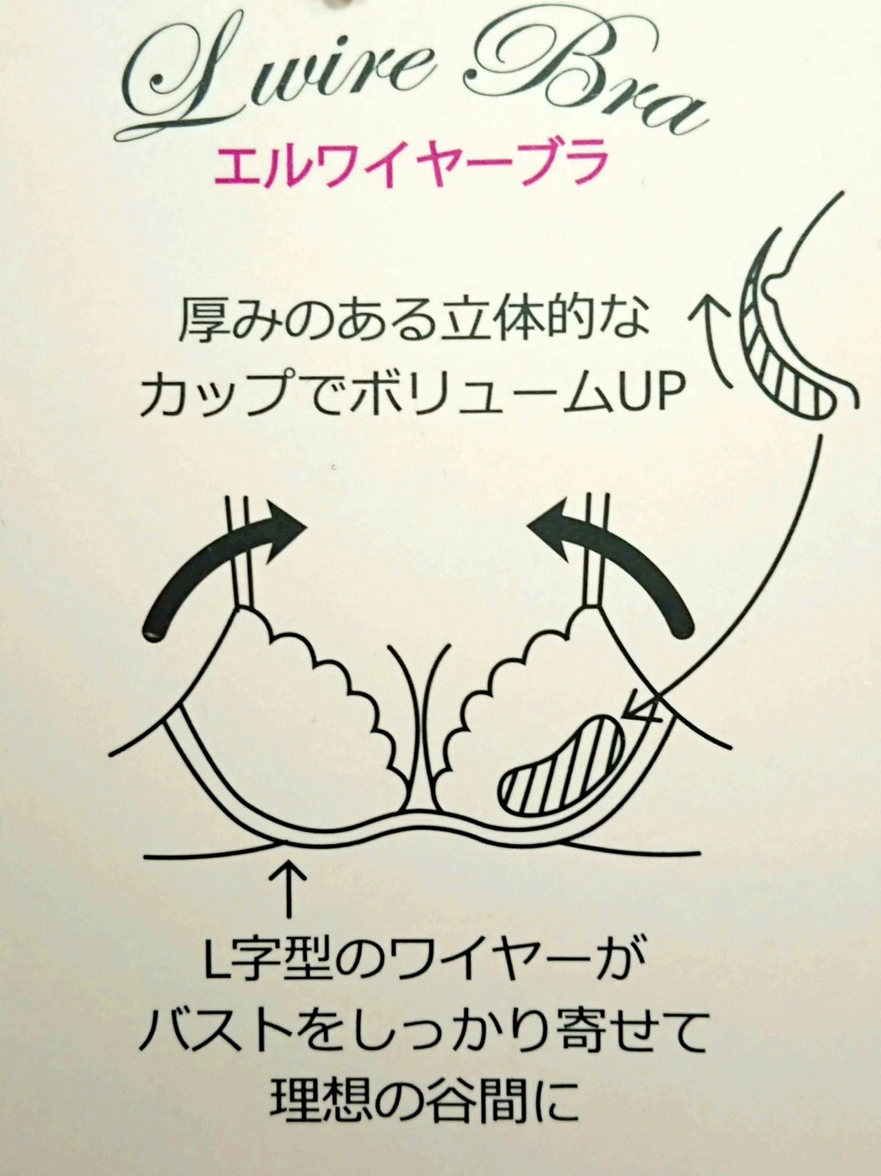 L字ワイヤーのブラなのでお胸をしっかり寄せてくれて、胸元の空いたお洋服もバッチリ決まりますよ!