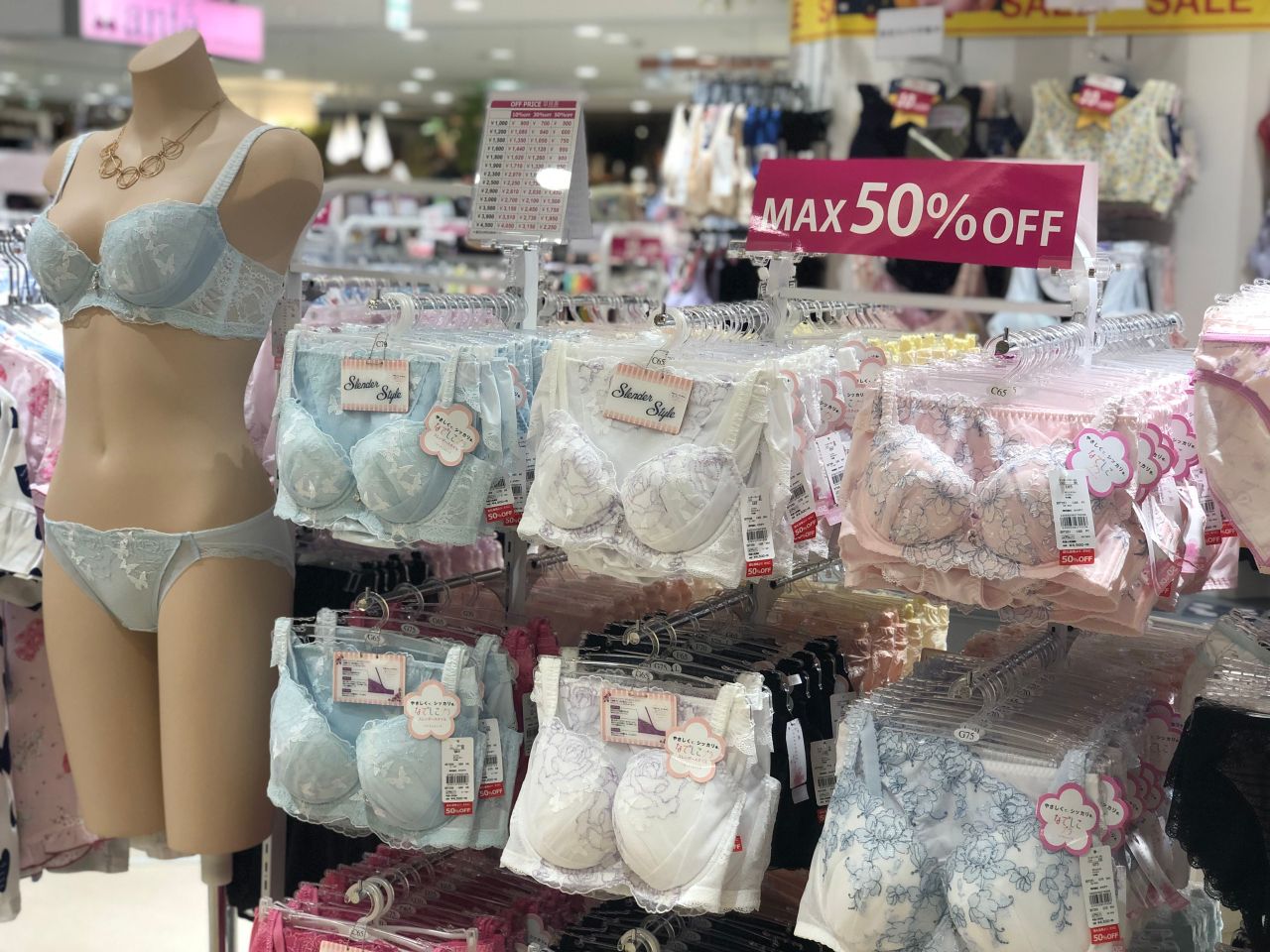 取り扱い商品:ブラジャー・ショーツ・ガードル・ランジェリー・ルームウェア・ヌーブラ・インナー・レッグなど