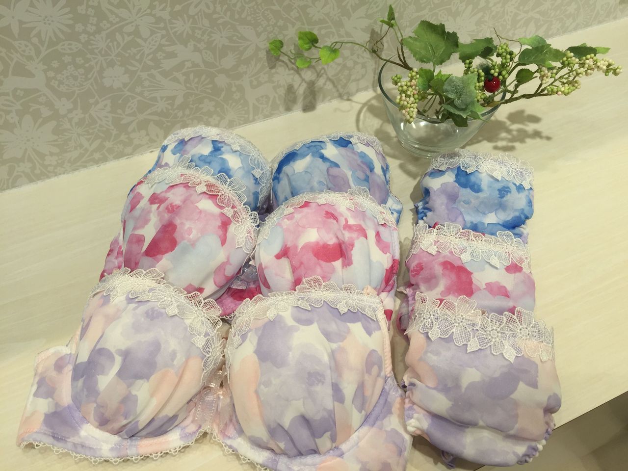 じんわりとにじんだ水彩画調のフラワーがみずみずしく爽やかな印象に。。。