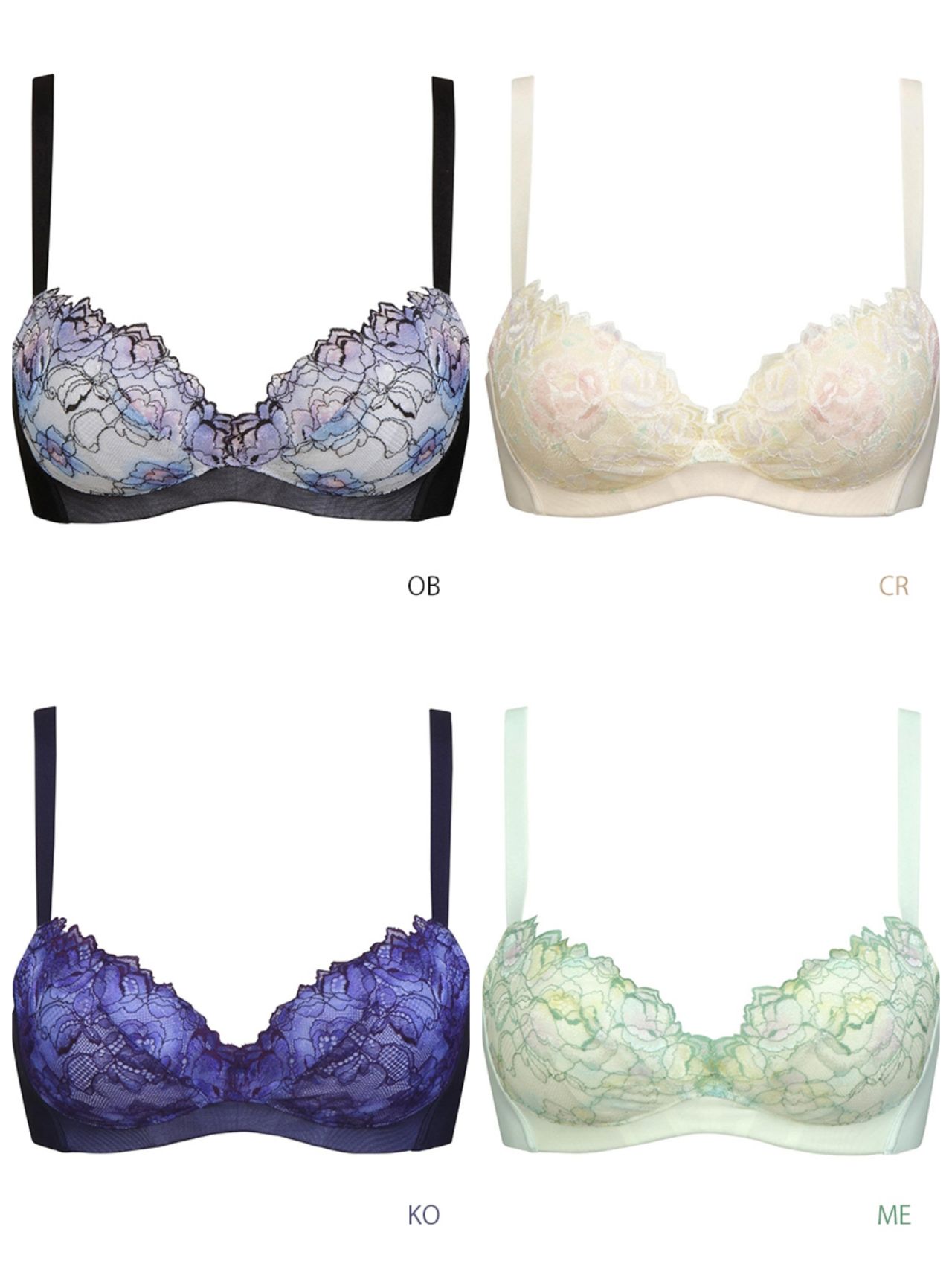 ワコールサルート、ワコール女神のヒミツ、ワコールスハダ、ワコールリボンブラ、ワコール小さく見せるブラ、ワコールアキュート、ワコールゴコチ、ワコールナイトアップブラ、トリンプ天使のブラ、トリンプ恋するブラ、トリンプジュエリング、トリンプフロラーレ、 トリンプスロギー、トリンプおねむりブラ、 ナルエー、ケーズウェイ、プレジャージーン、フリープ