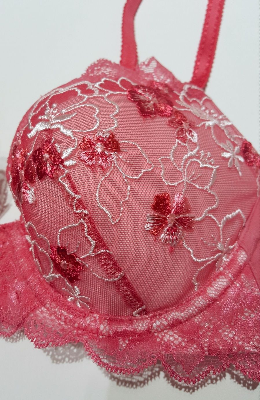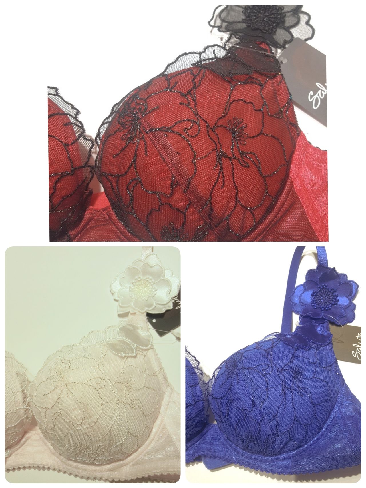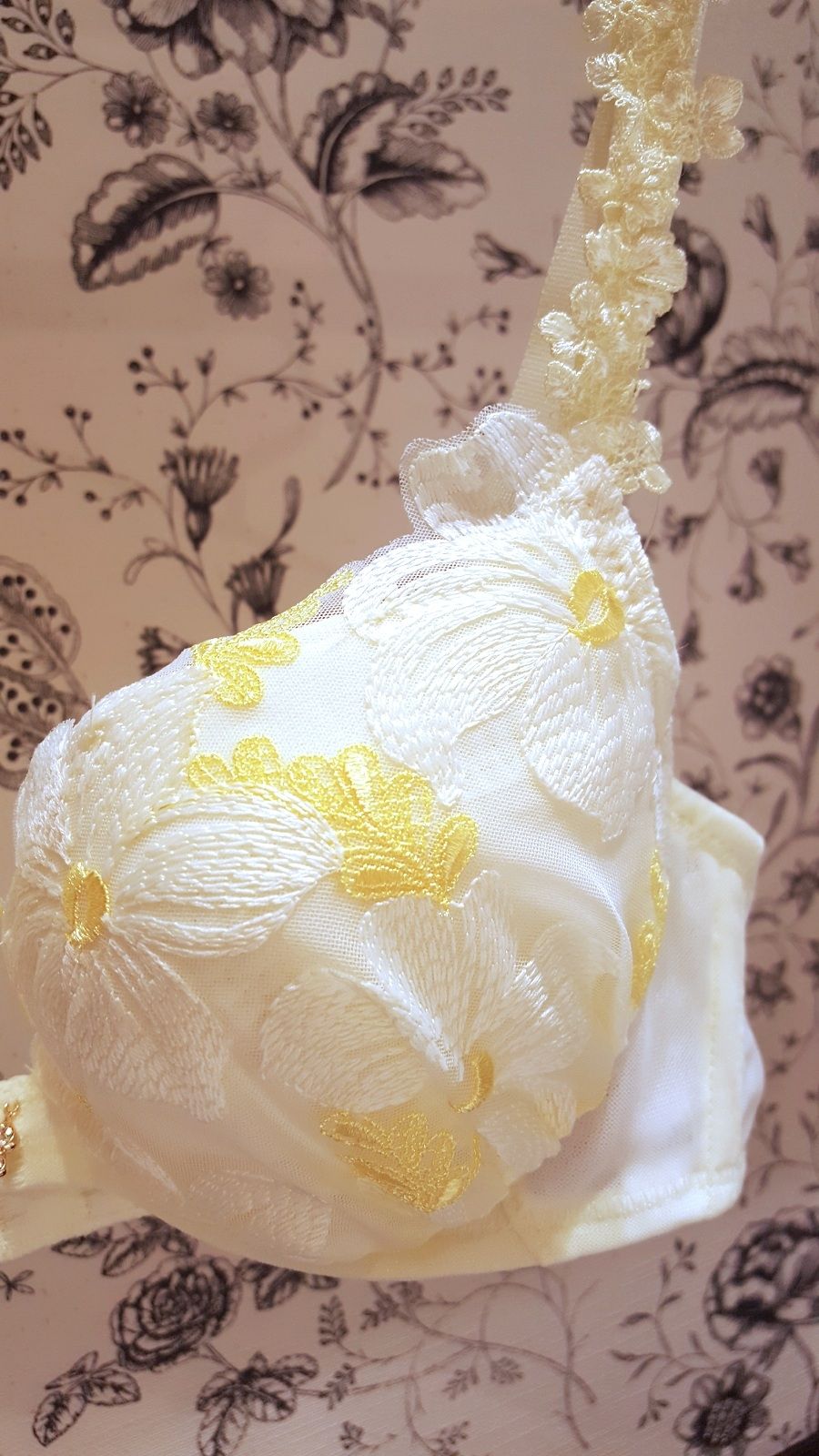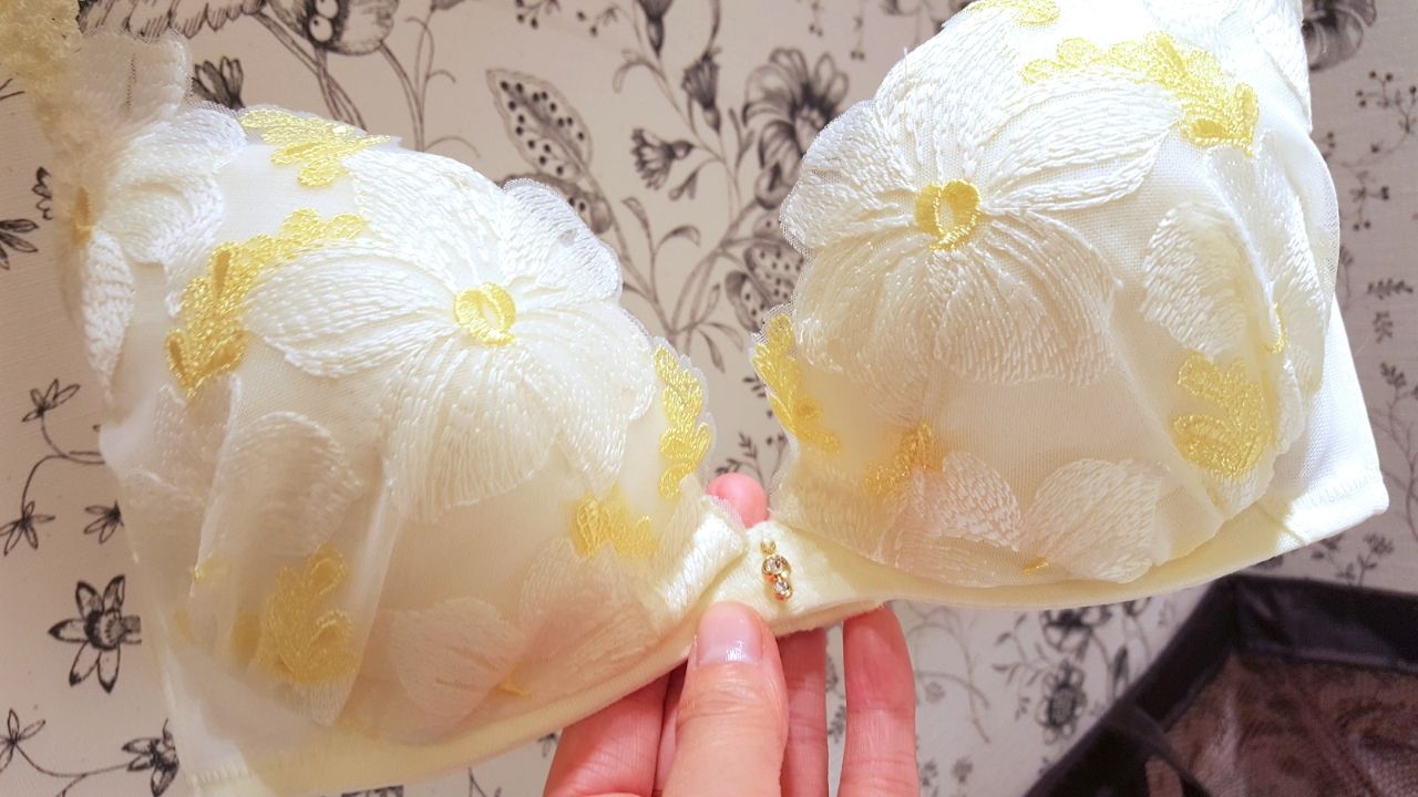 カップ下辺には、重なりあったフラワーアップリケがあり、華やかさを演出☆
