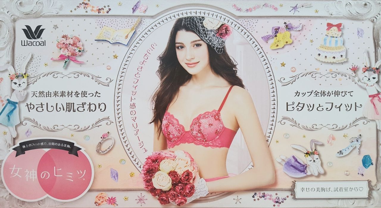 ワコールサルート、ワコール女神のヒミツ、ワコールスハダ、ワコールリボンブラ、ワコール小さく見せるブラ、ワコールアキュート、ワコールゴコチ、ワコールナイトアップブラ、トリンプ天使のブラ、トリンプ恋するブラ、トリンプジュエリング、トリンプフロラーレ、 トリンプスロギー、トリンプおねむりブラ、 ナルエー、ケーズウェイ、プレジャージーン、フリープ