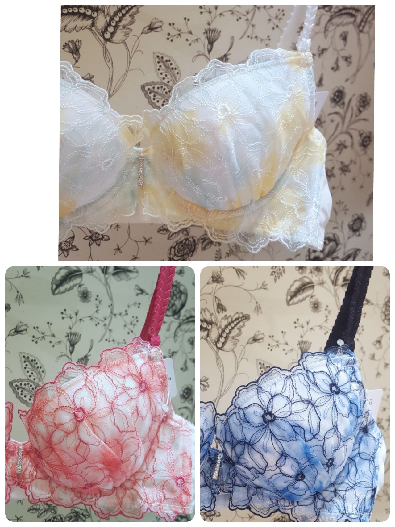 ワコールサルート、ワコール女神のヒミツ、ワコールスハダ、ワコールリボンブラ、ワコール小さく見せるブラ、ワコールアキュート、ワコールゴコチ、ワコールナイトアップブラ、トリンプ天使のブラ、トリンプ恋するブラ、トリンプジュエリング、トリンプフロラーレ、 トリンプスロギー、トリンプおねむりブラ、 ナルエー、ケーズウェイ、プレジャージーン、フリープ