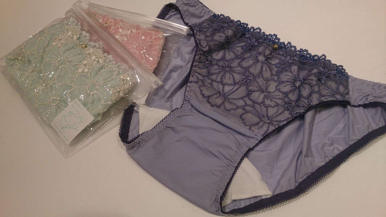(ショーツ価格)ノーマルショーツ1800円+税、サイドリボンショーツ2000円+税、サニタリーショーツ2000円+税)
