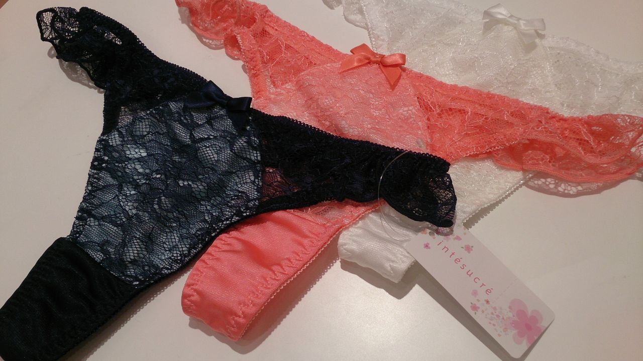 (価格)ブラジャー上下セット2500円+税、Tバック1000円+税