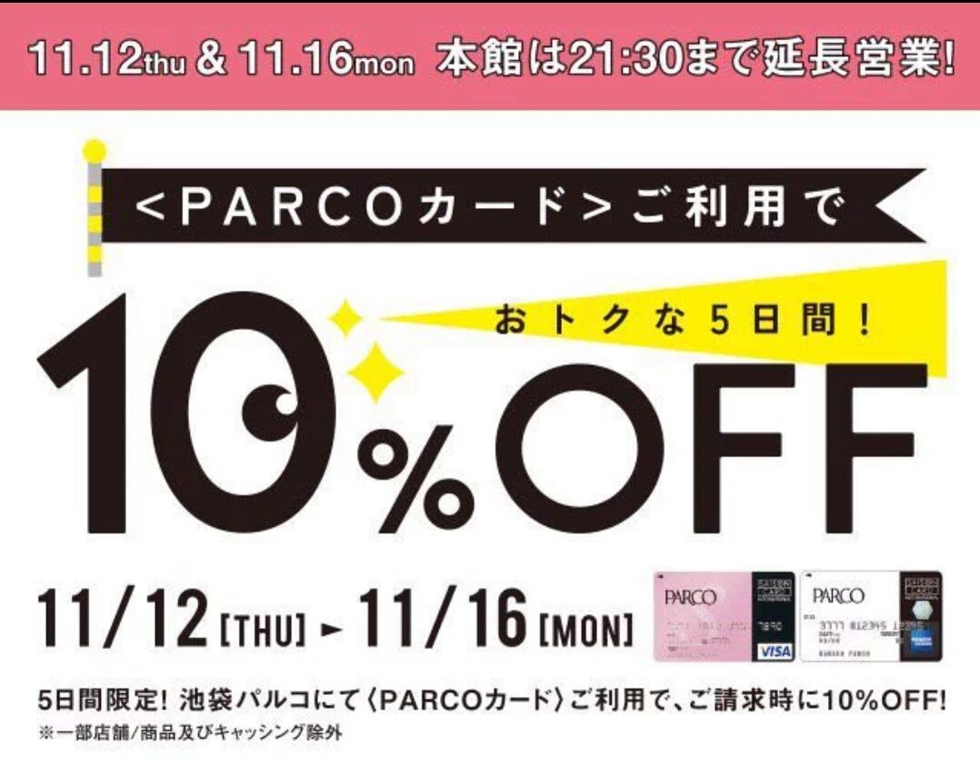 明日の12日から、パルコカードご利用で全品10%offになっちゃうお得な期間が始まります٩(❁´Ủ`❁)۶