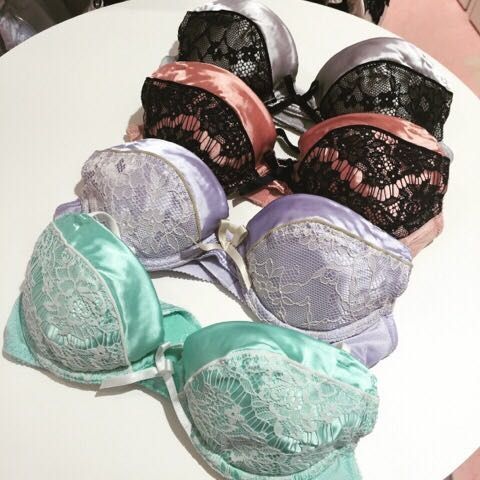 大人っぽいサテンに、レースやリボン、フリルなどがかわいらしいこちらのブラ♡