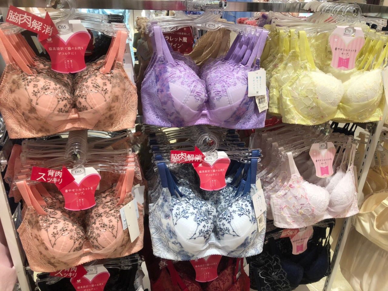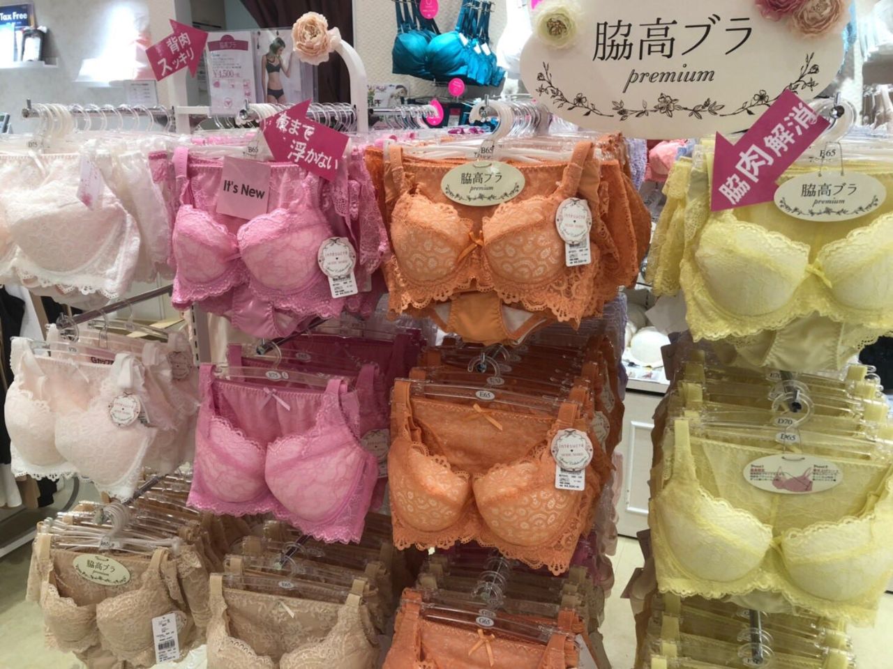 アンテシュクレ、ワコール リボンブラ、ワコール 女神のヒミツ、ワコール SUHADA、ワコール サルート、ワコール ツモリチサト、トリンプ 天使のブラ、トリンプ 恋するブラ、トリすンプ フロラーレ、トリンプ ジュエリング、ナルエー、プレジャージーン etc