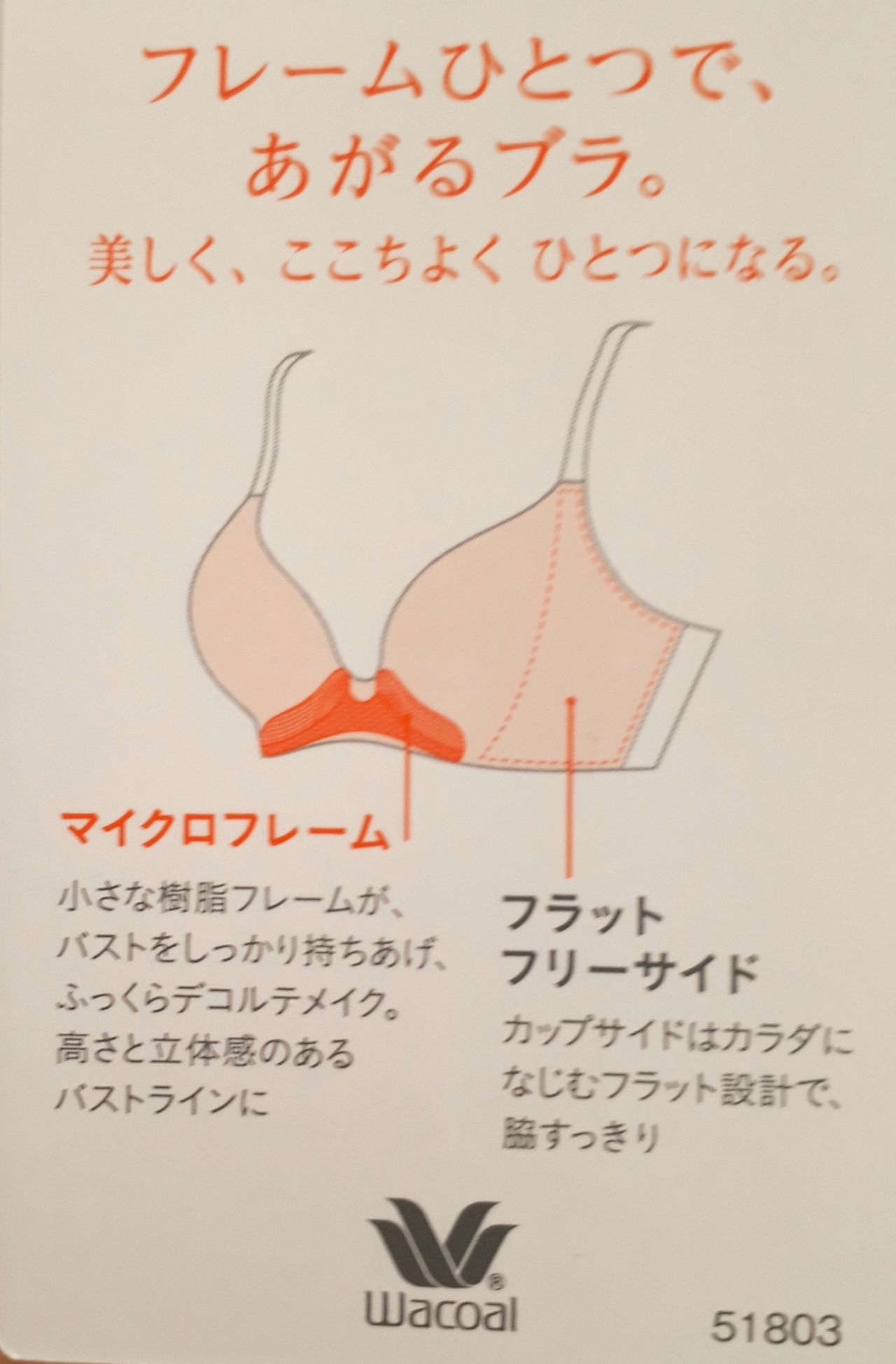 バスト中央のフレームでバストをグッと持ち上げ、ワイヤーが入っていないのでとても楽な着け心地!
