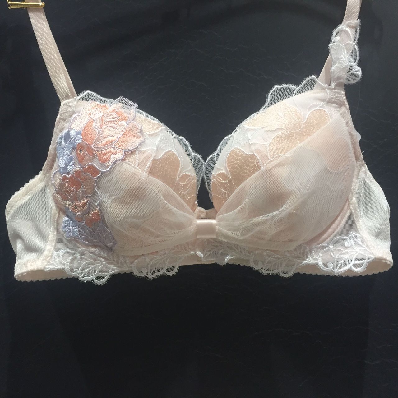 お肌に溶け込むようなシェルピンクのお色と刺繍のシルバーのお色が、より肌に透明感を与えます。