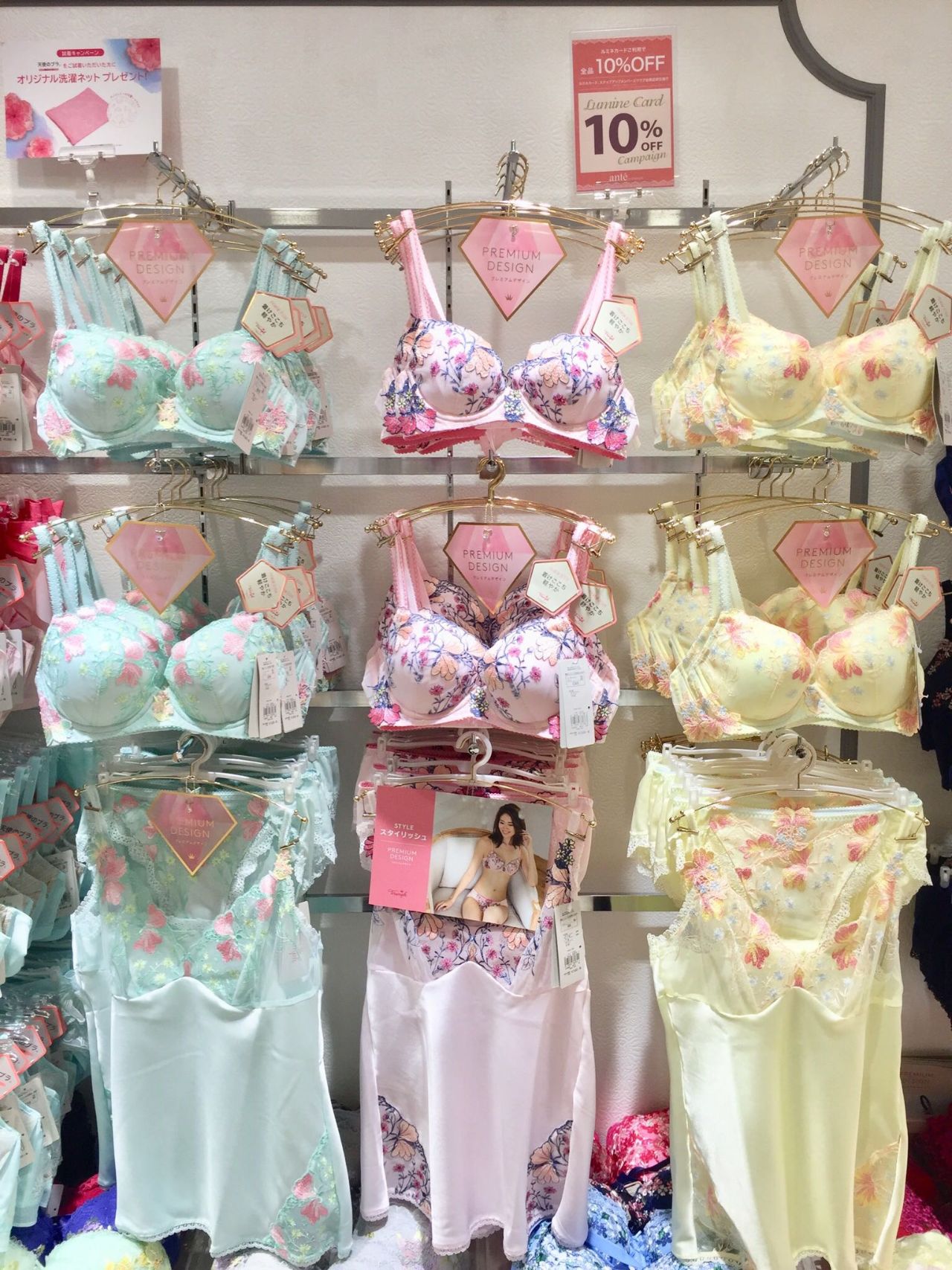 取り扱い商品 ブラジャー、ショーツ、ルームウェア、ガードル 、キャミソール、スリップ、ペチコート、インナー、ストッキング など 取り扱いブランド アンテシュクレ、ワコール、トリンプ、ナルエー など