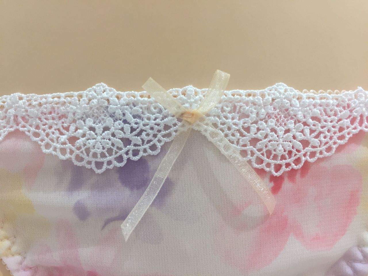 前中心とショーツのリボンはチュールリボンで柔らかく透明感があります。