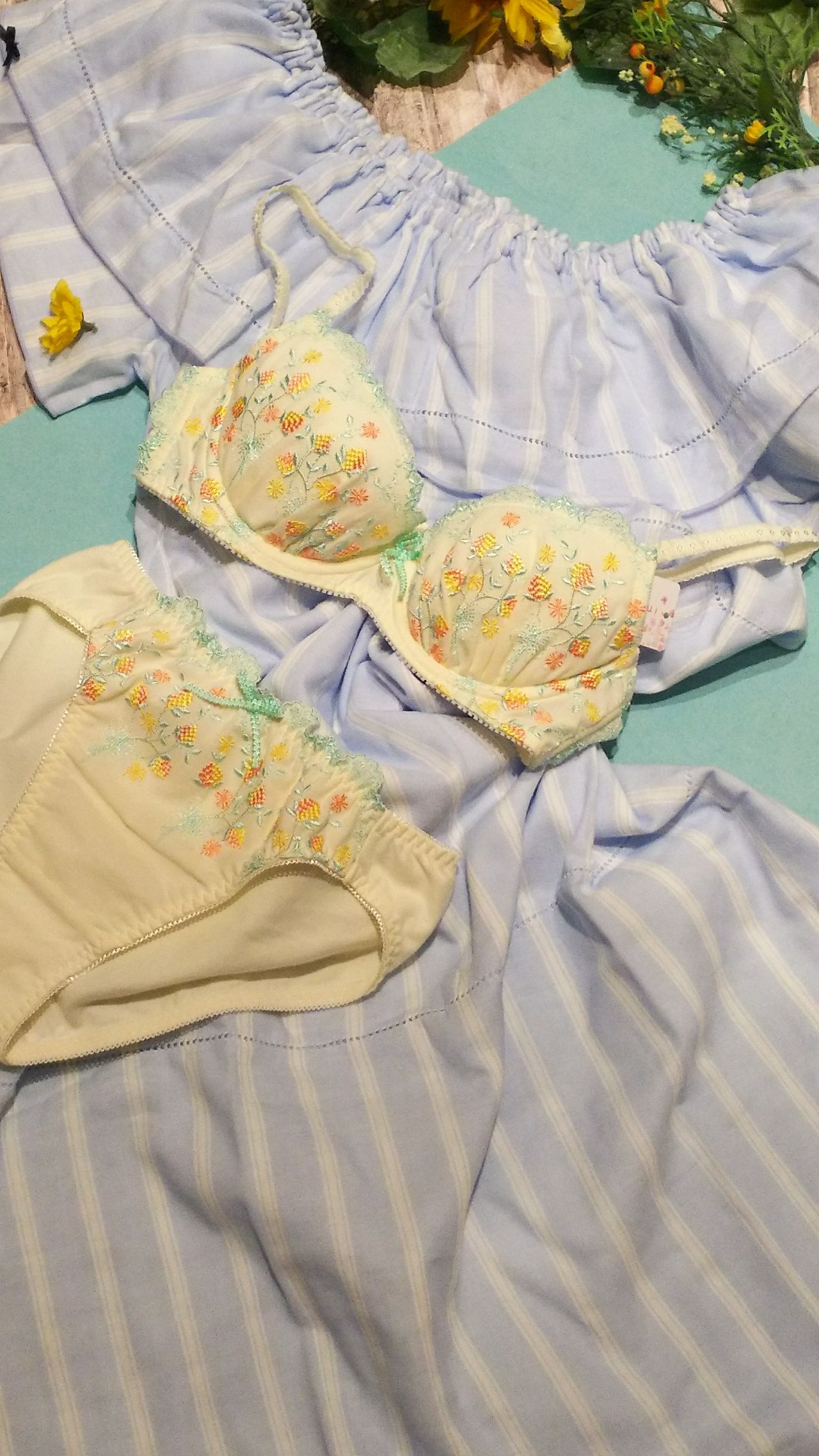 *ブラジャー&ショーツは、清楚なコットンホワイトにオレンジとグリーンの刺繍が鮮やか。
