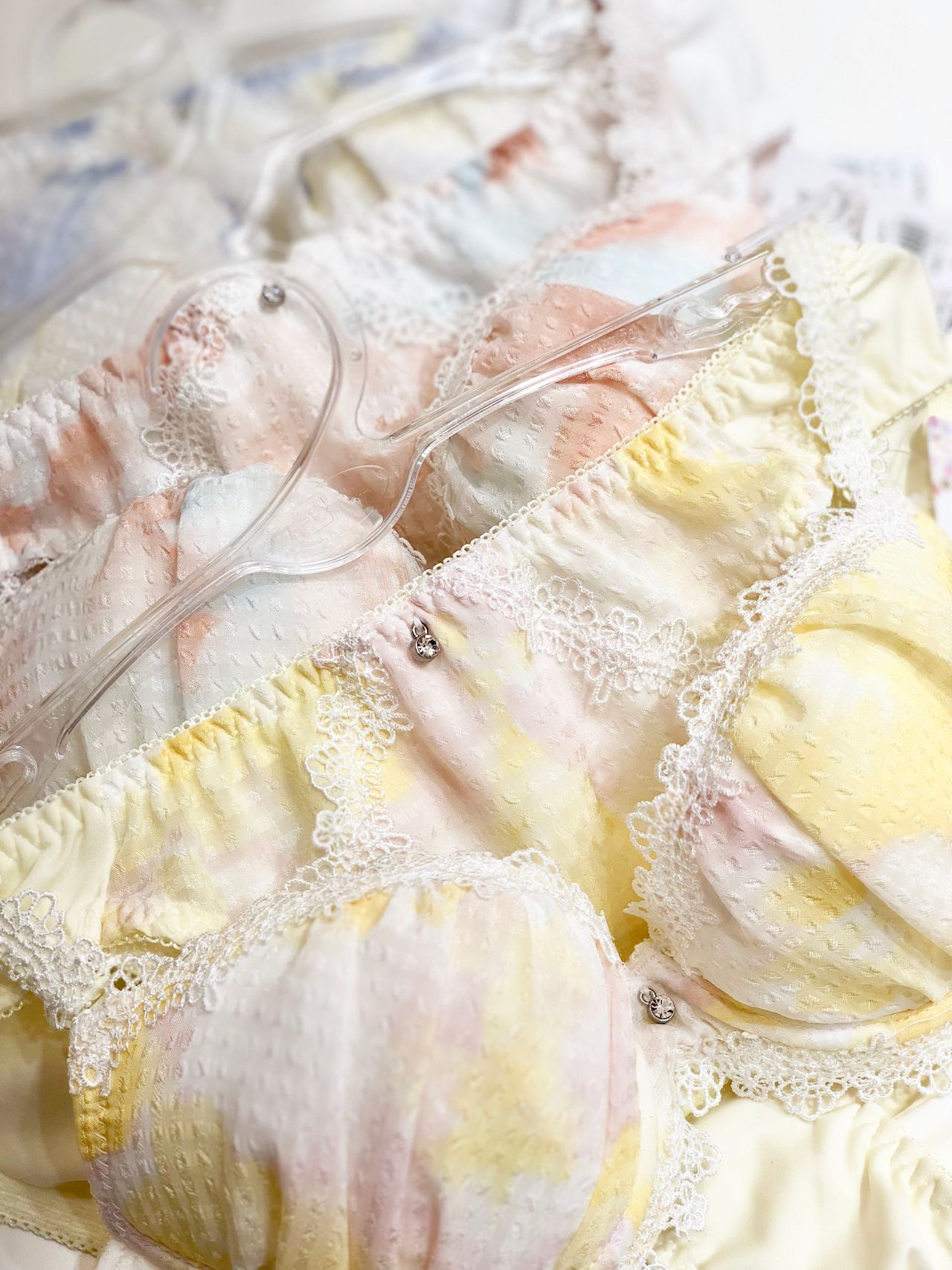ふわふわとした水彩画のようなプリントが可愛らしいデザイン♡