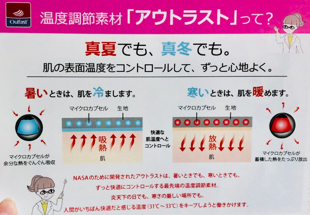 ① トップス部分の素材に特殊な温度調節素材【アウトラスト】を使用
