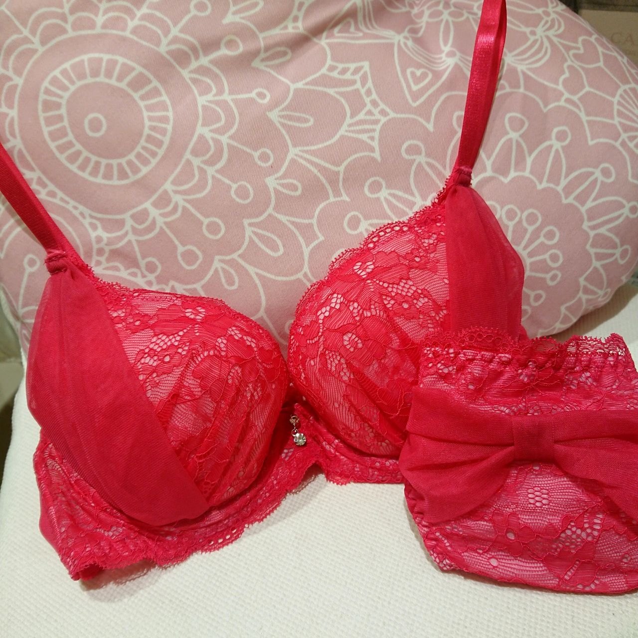 パッと目を引く赤いブラは、着けているだけで元気が出るカラーです!!