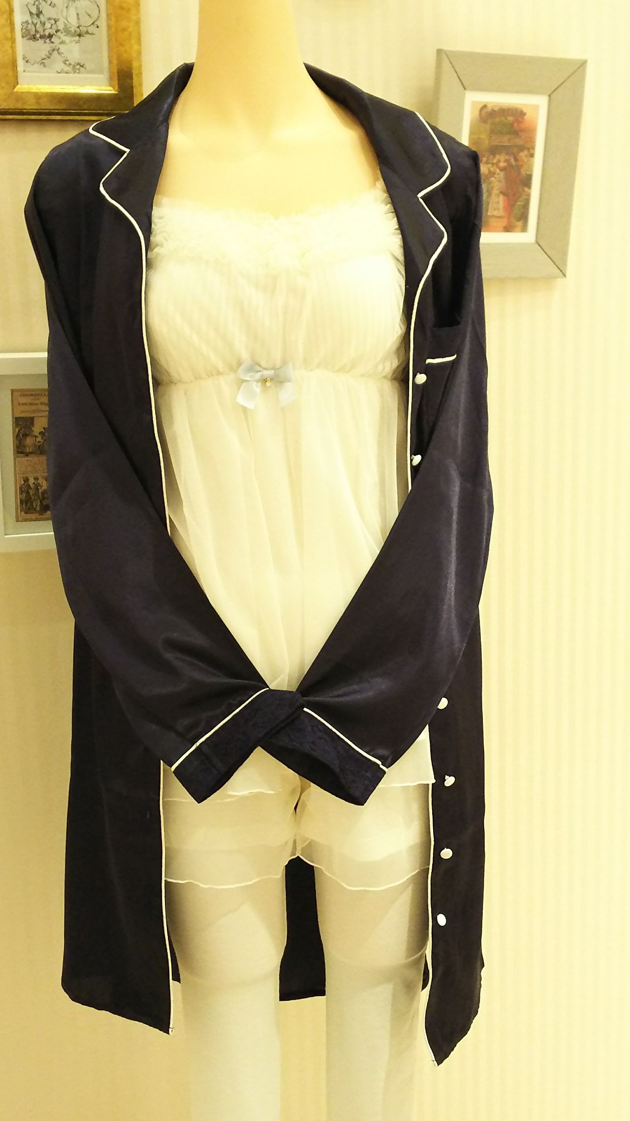 ロマンティックな『キャミワンピ』にとろみサテンの『シャツワンピ』を羽織ってみました。