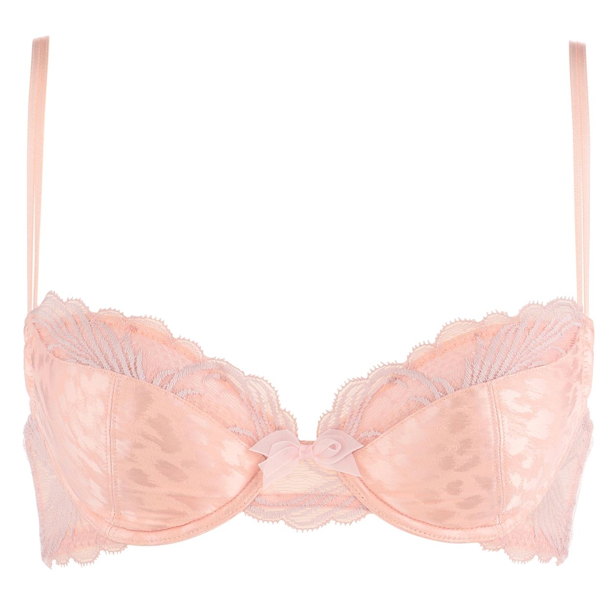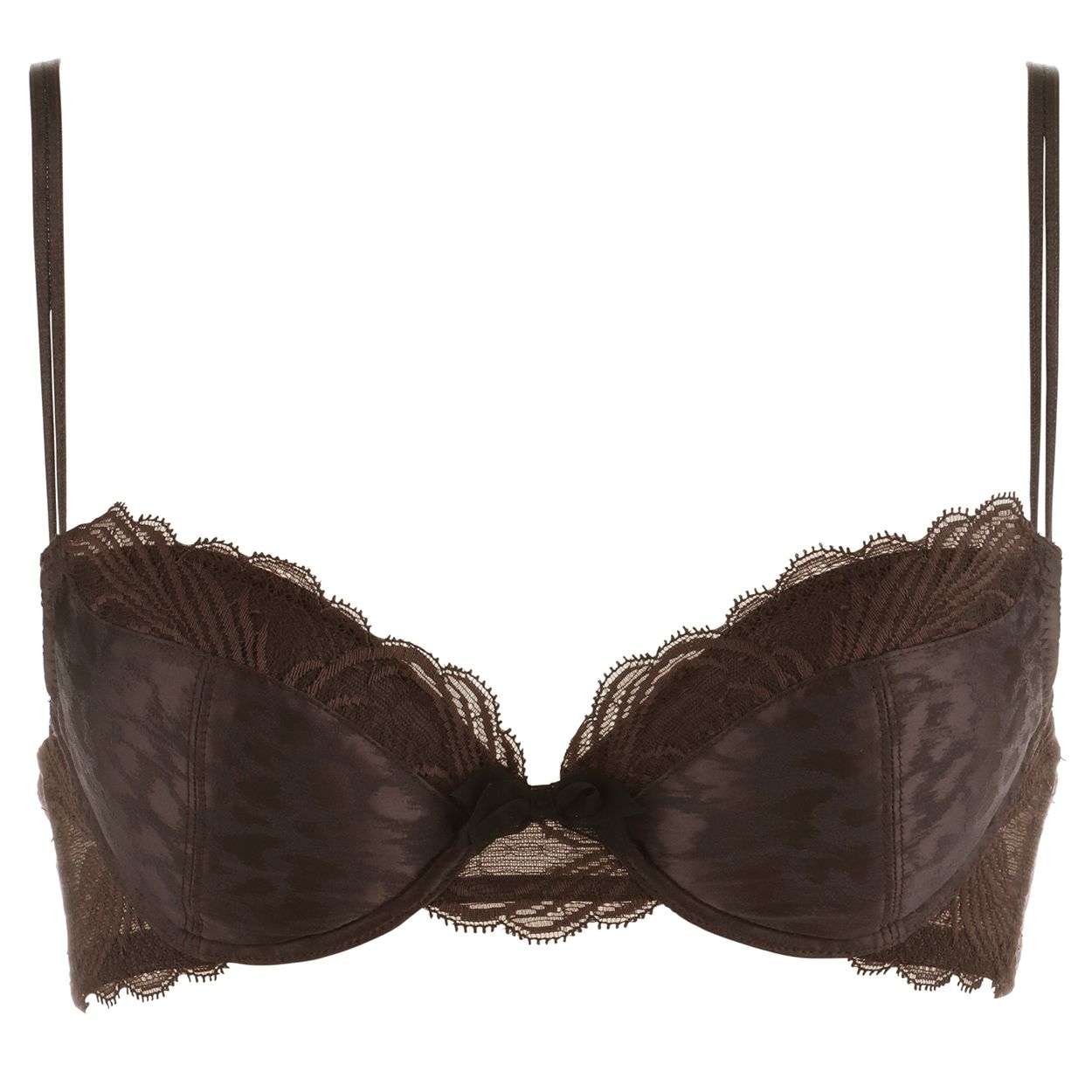 レオパード柄が浮かび上がるストレッチサテンと繊細な羽のリバーレースとの美しいコンビネーション。