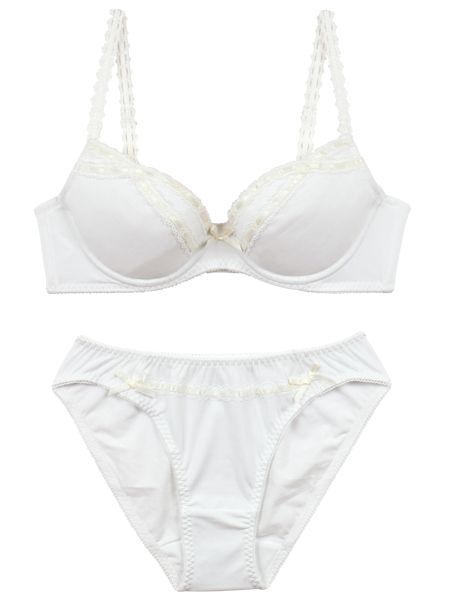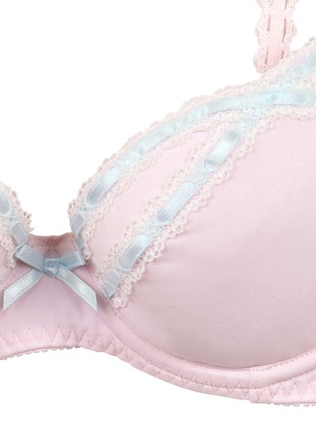 5月のあたたかな日差しのような優しい光沢のサテンテープを、軽く跳ねる空気感をイメージしたラッセルのはしごレースを通したガーリーなディテール。