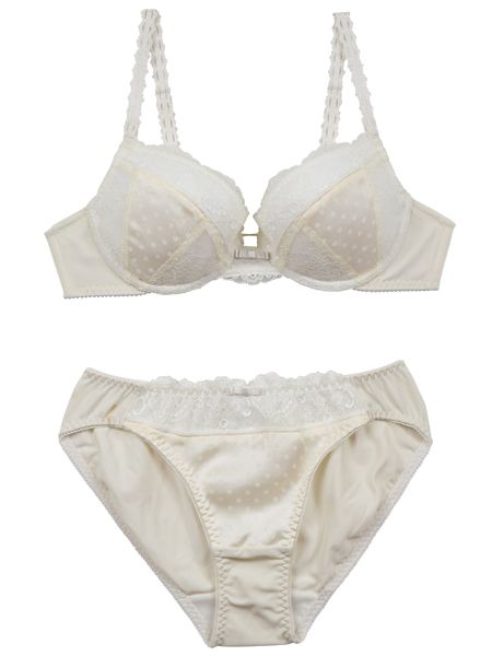 しっとりとした輝きが美しいアイボリーはキュートなドット柄。
