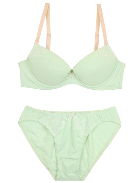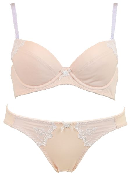前中心のフラワーケミカルアップリケとジョーゼットリボンの組み合わせで