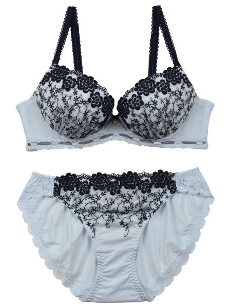 淡く優しい水色にネイビーの刺繍で柄の可愛らしさが際立つメインカラーのサックス