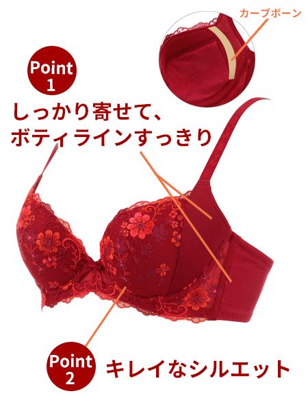 カップサイドの「エンジェルスリムシート」と「カーブボーン」で、脇からしっかり寄せてすっきりスリムに魅せます。