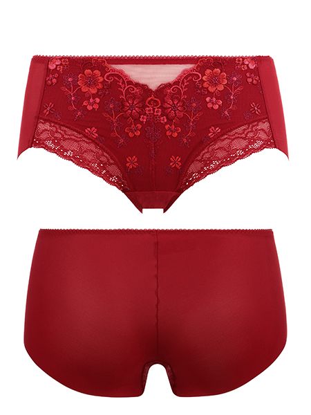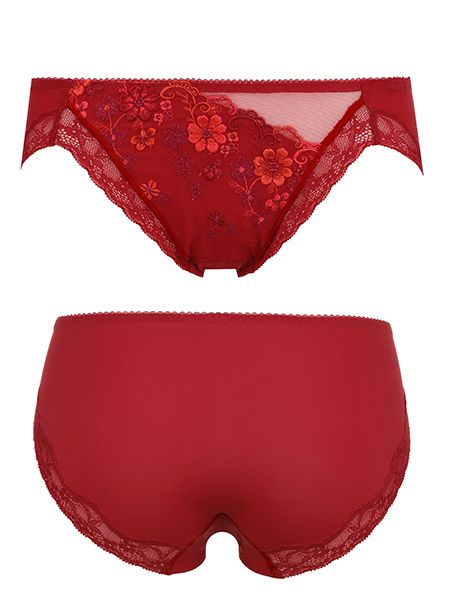 深みのあるレッドときらきらと輝くエンブロイダリーレースで、華やかさと高級感を。