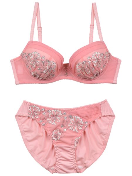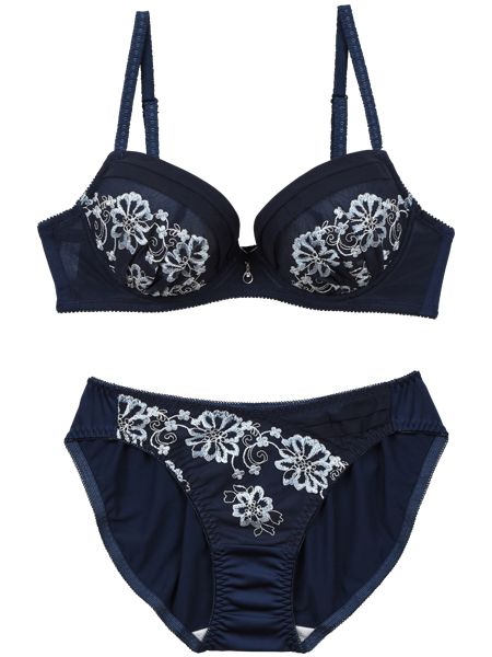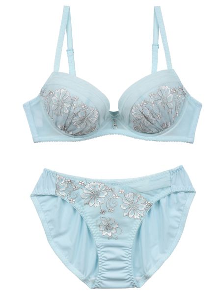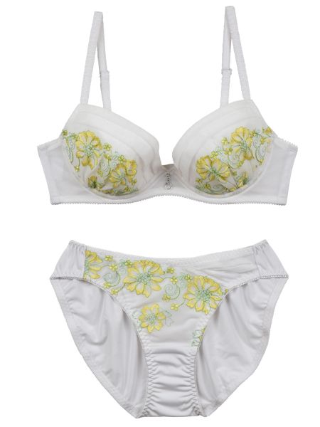 カップとショーツのフロントにあしらわれた刺繍は上品な高級感を漂わせていて、