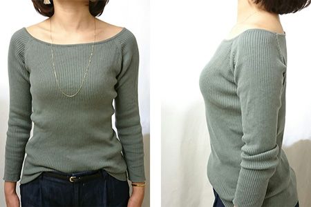 鎖骨見せのリブニットでもこの通り、胸のトップ位置も普通の3/4カップと変わりません♪