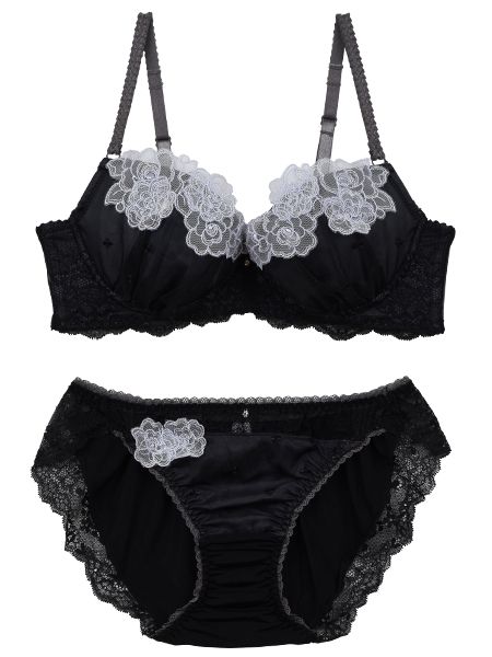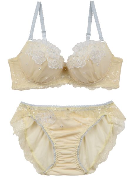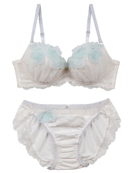 ギャザーを寄せたふんわりシルエットのカップに咲く小花刺繍。