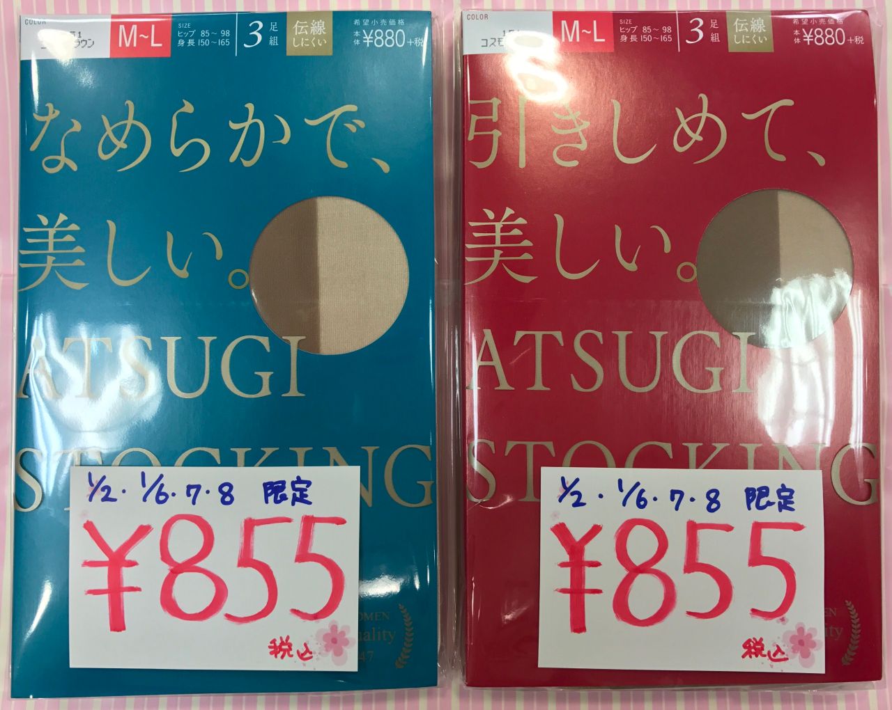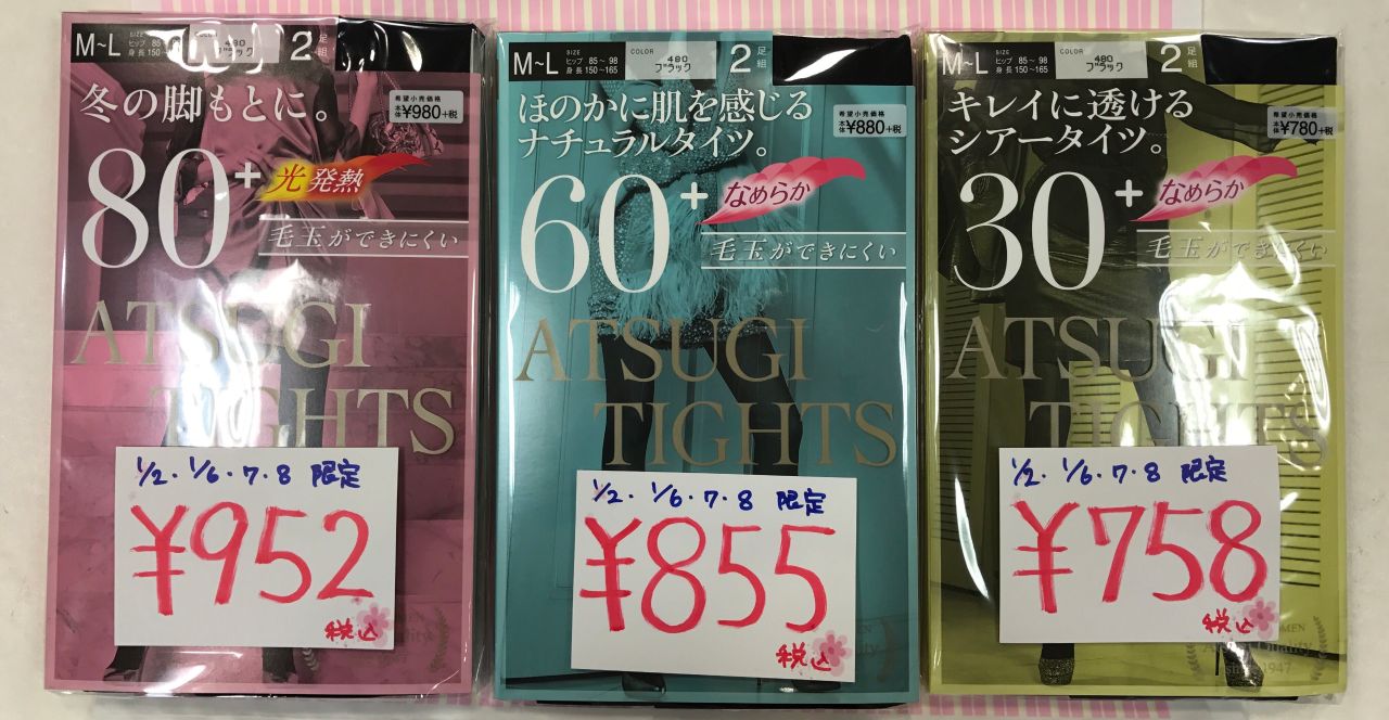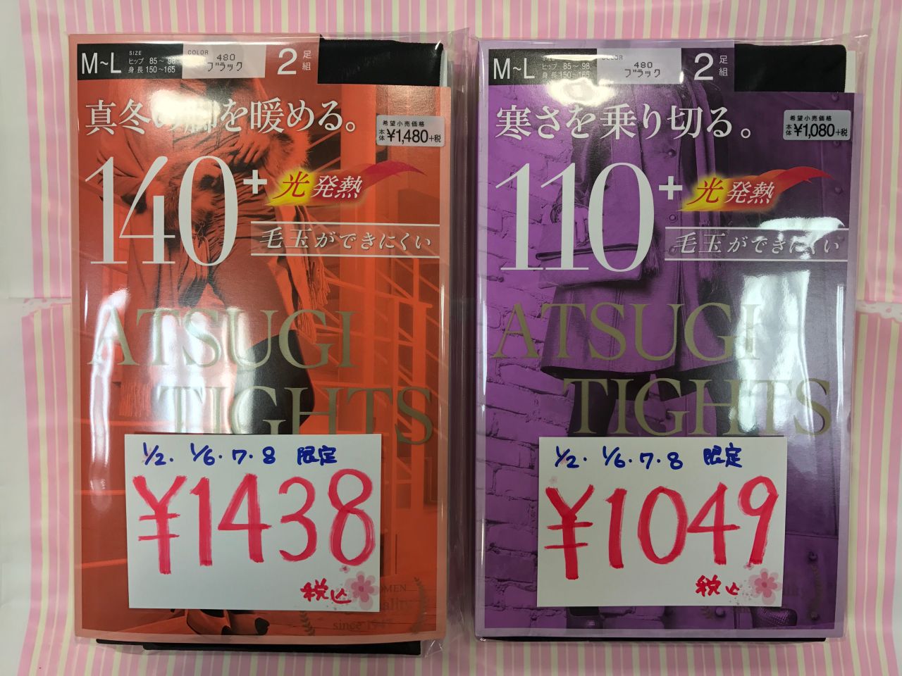 普段は安くならない定価のストッキングや、タイツなどがお得にお買い物ができるチャンスとなっています!