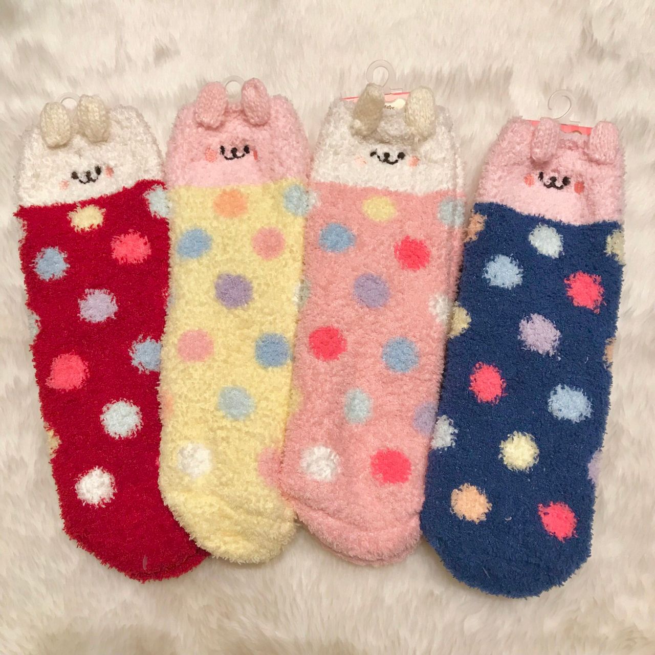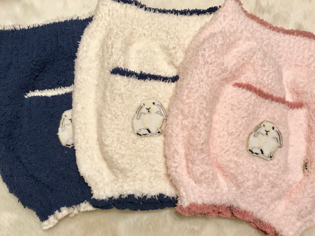 うさぎちゃんの刺繍アップリケがお揃いの腹巻やモコモコソックスを添えるとより統一感が出ておすすめです♡♡