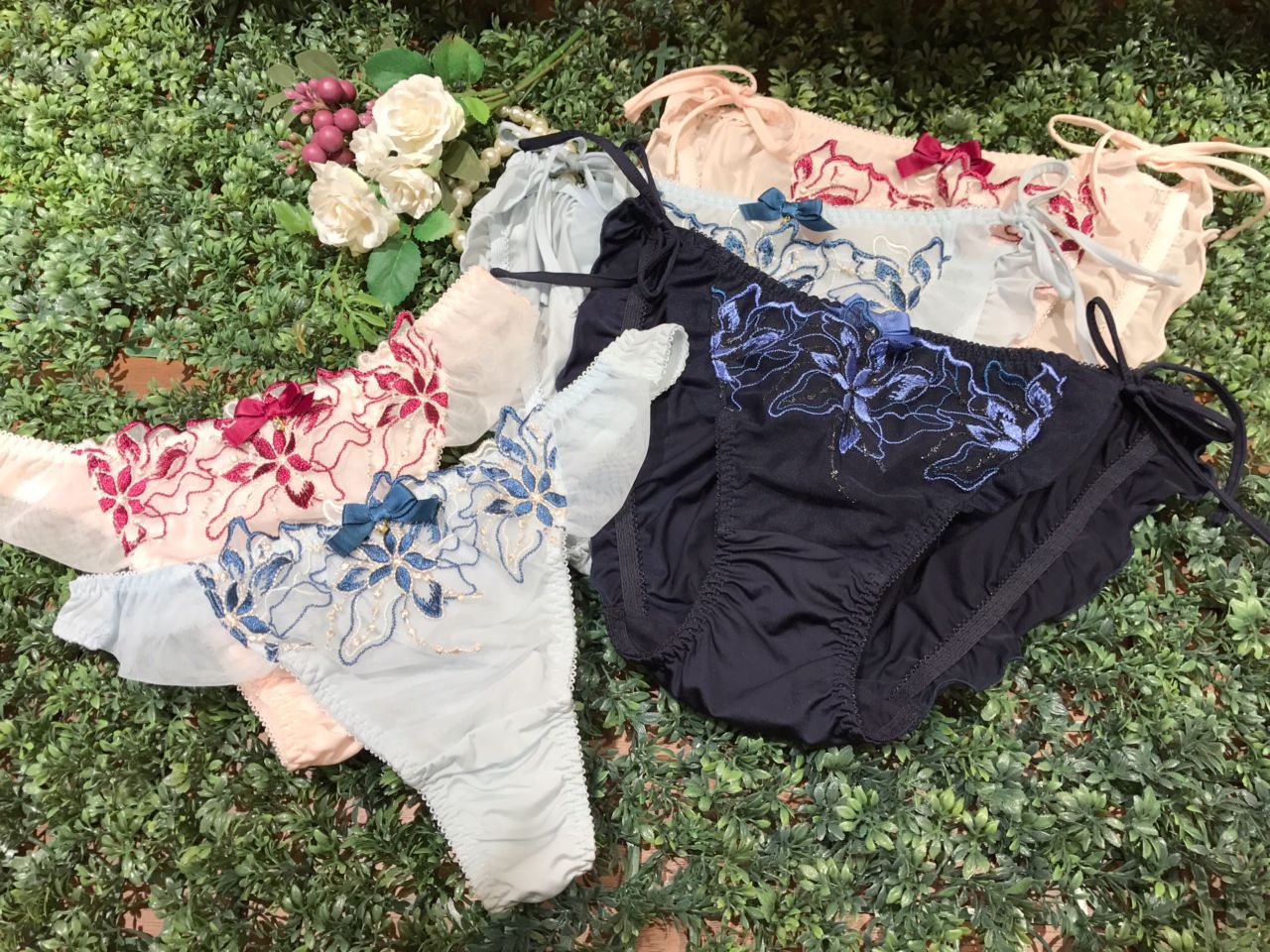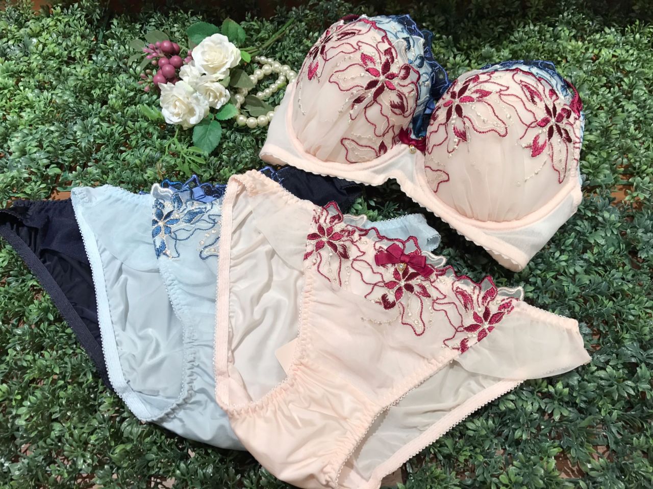 上品で大人っぽくもある色使いのフラワー刺繍が秋らしいデザインの人気シリーズ(*^^*)カップは深さがあり、バストを優しく包み込んでくれます♡