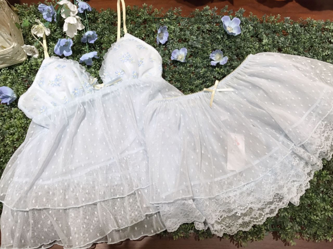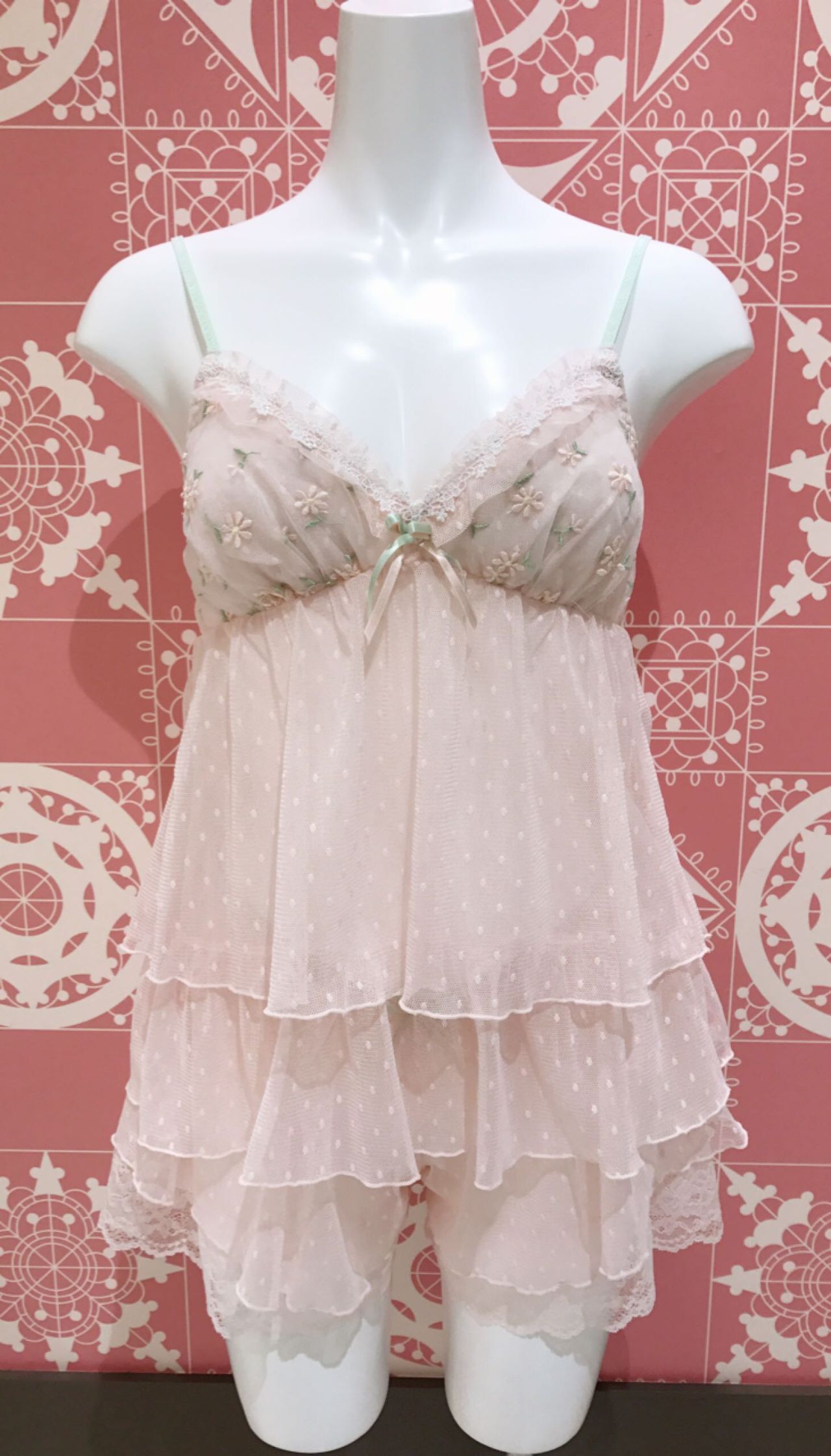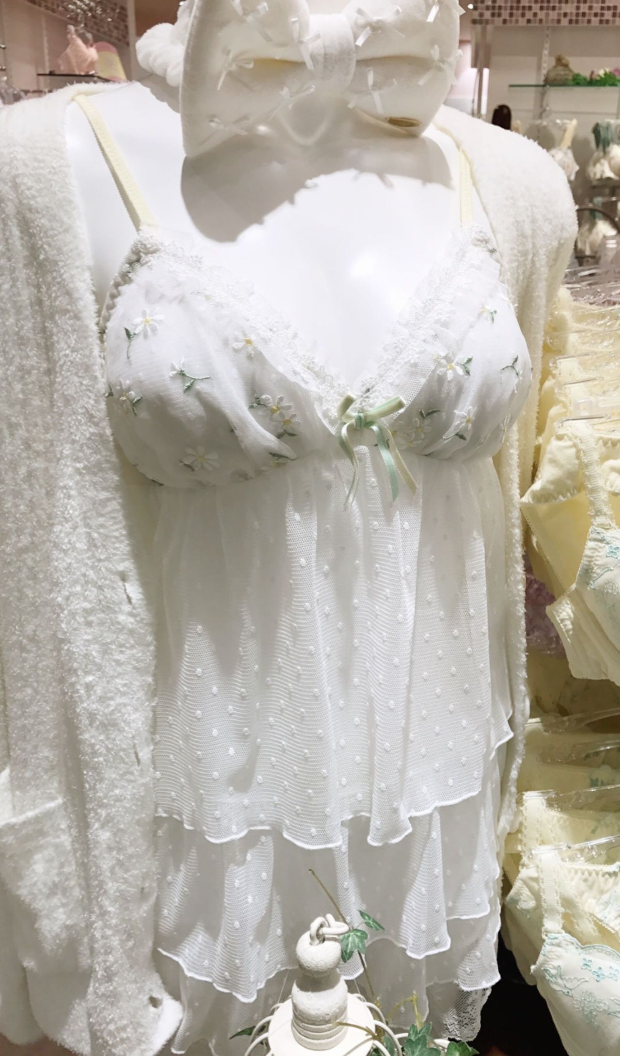 こちらはドット柄のレースを2枚に重ねたオシャレなデザイン♡カップ表面に小花刺繍(๑>◡<๑)が軽い着心地で楽ちんなイチオシアイテム☆