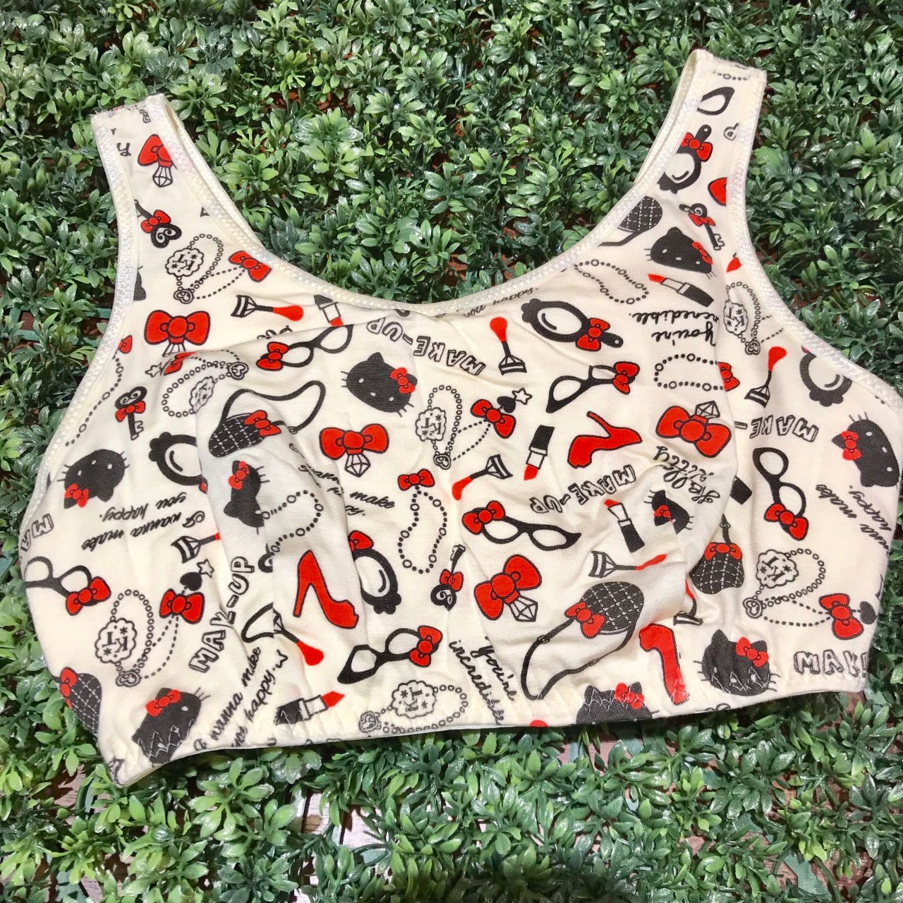 キティちゃんの他に、たくさんのお洒落アイテムが一緒にプリントされているキュートなデザインです(๑❛ᴗ❛๑)