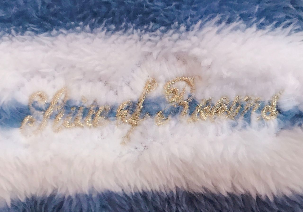 ランダムなボーダー柄にラメ文字の組み合わせが