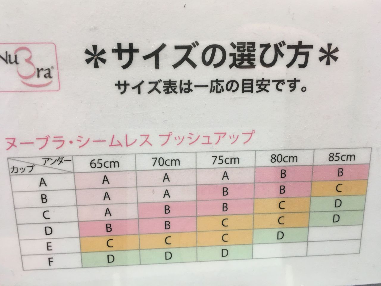 (ヌーブラ のサイズ表です)↓