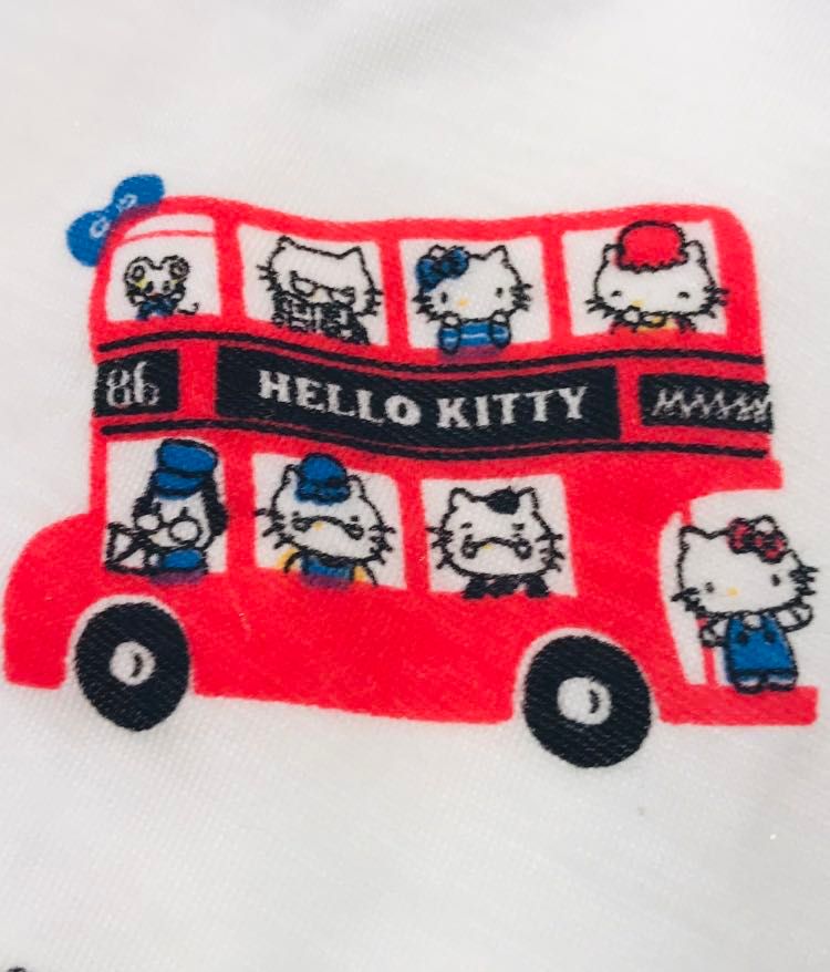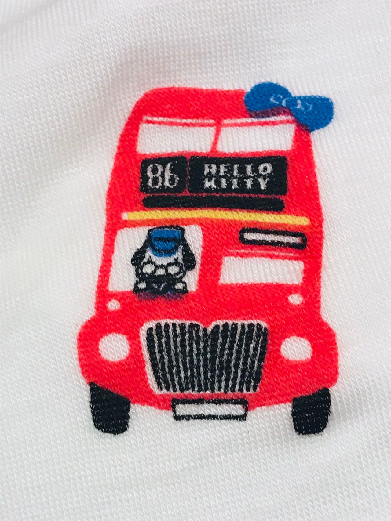 にフォーカスし、ロンドンバスをポップに散りばめられたキティちゃん柄になっています♡