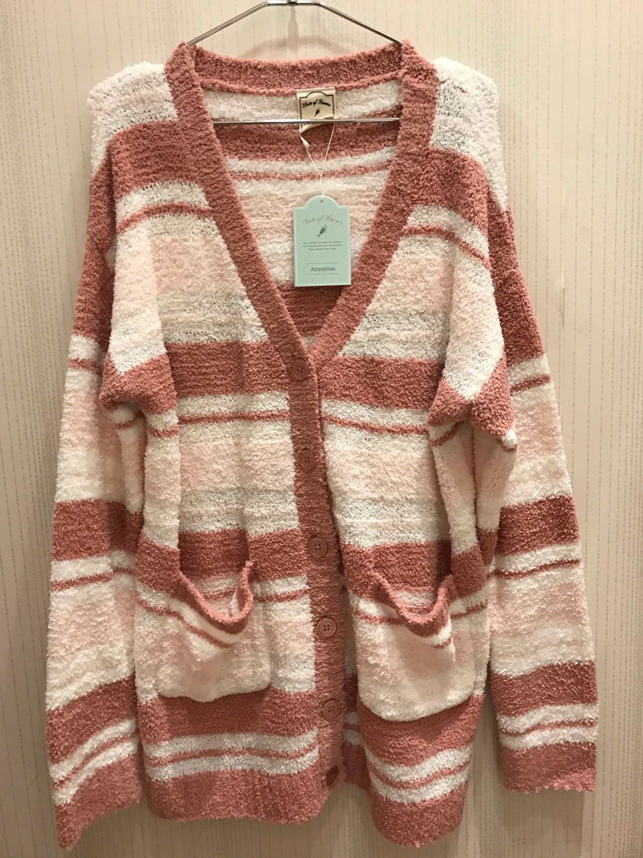 こちらは人気のTKFのカーディガン(o^^o)フワフワニット素材のランダムボーダー柄♡モコモコしすぎず、ちょっと肌寒い夜にサッと羽織るだけであったかく、可愛い姿に変身♡ポケットも2つついてます(^ ^)