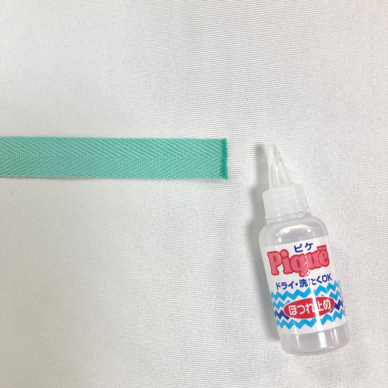 ほつれ止め液が乾いたら、次はテープにパーツを取り付けていきます。