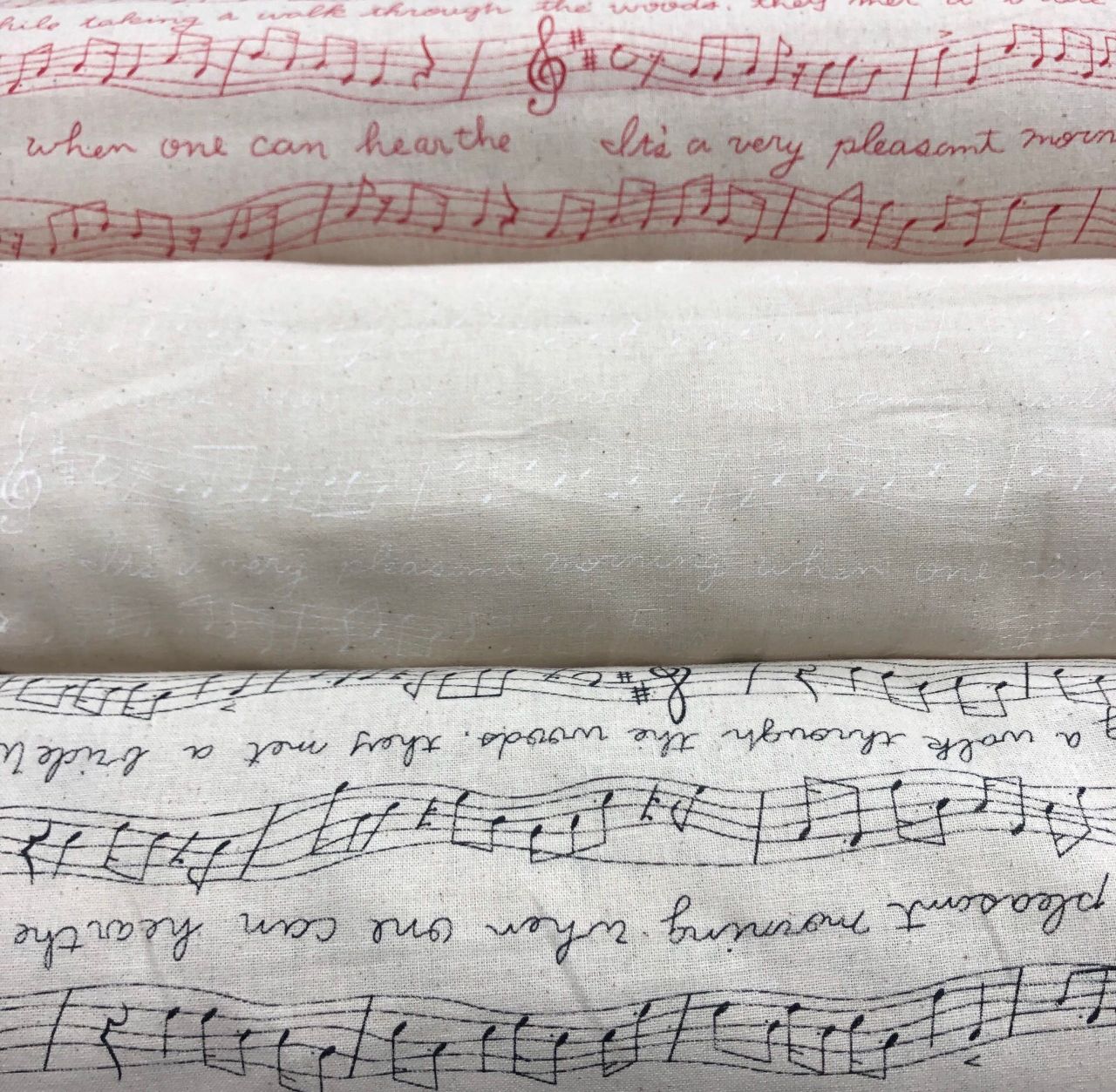無地に見える生成はうっすら五線譜♪柄入っている綿のプリント生地なのです!