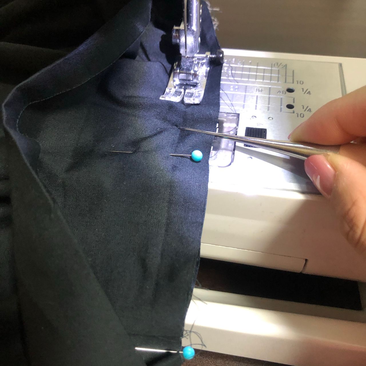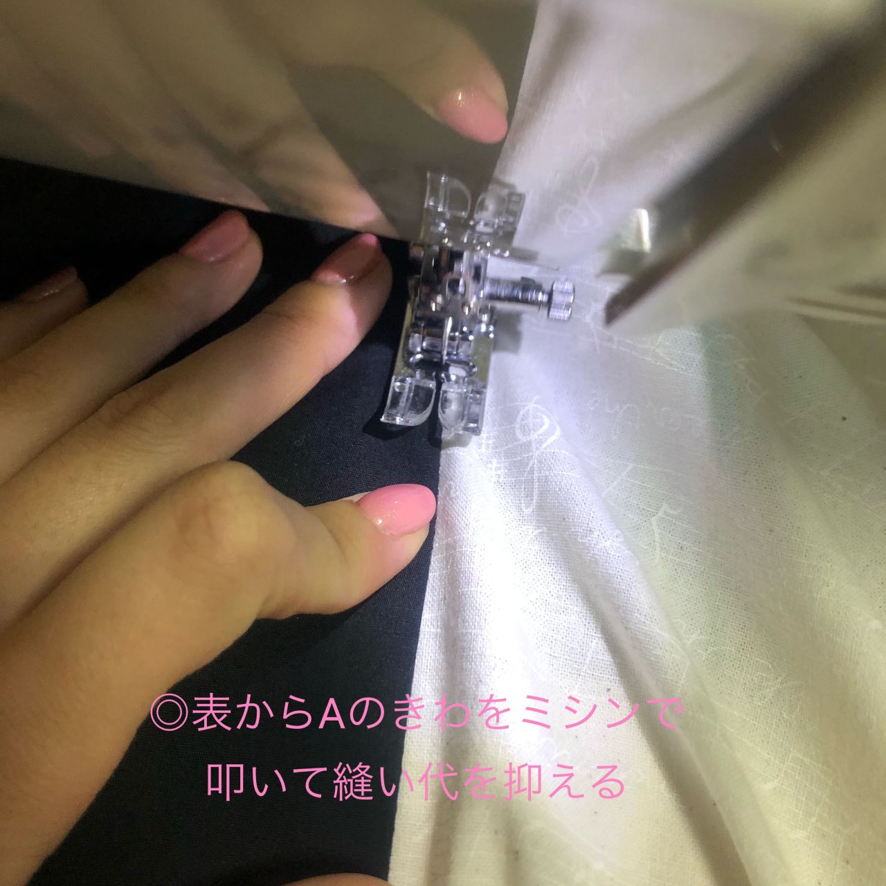 縫い合わせた所を表から一度ミシンでたたく。