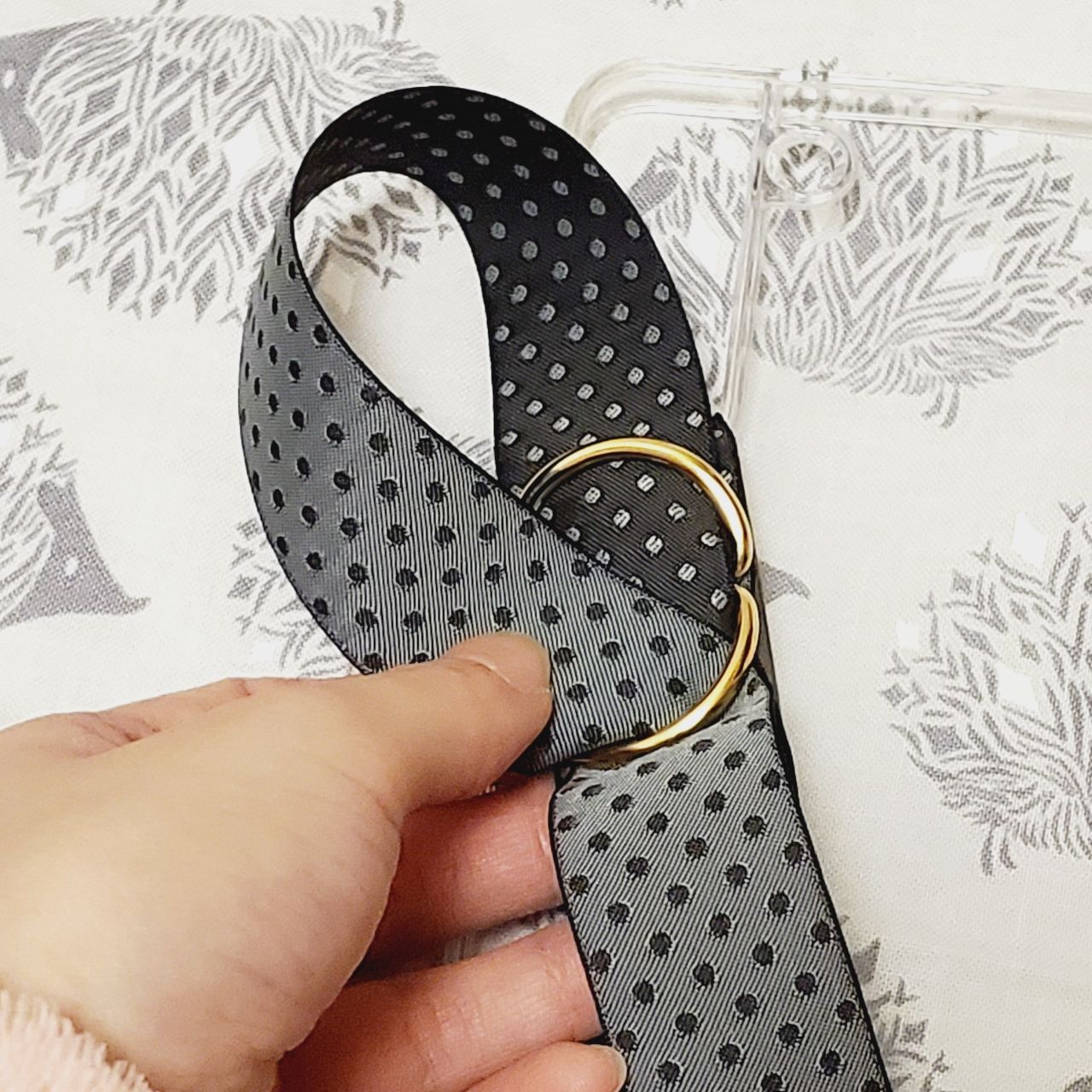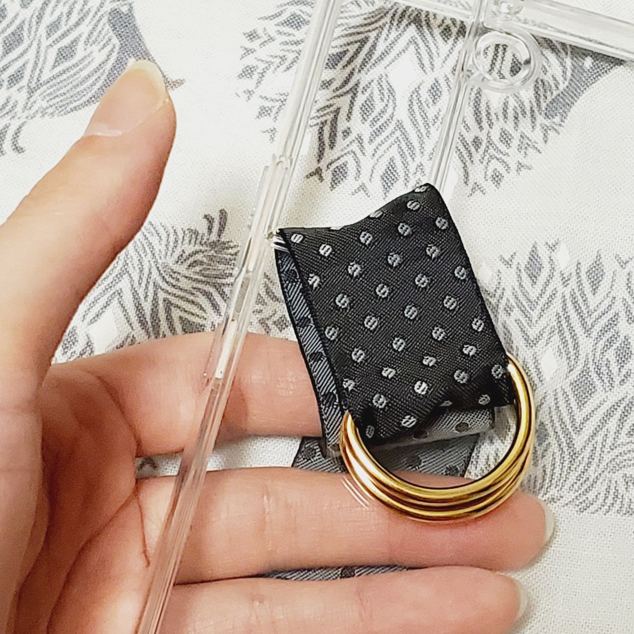グレーのリボンとDカン2つ、両面テープを使って、今度は少しアレンジします٩( ‘ω’ )و