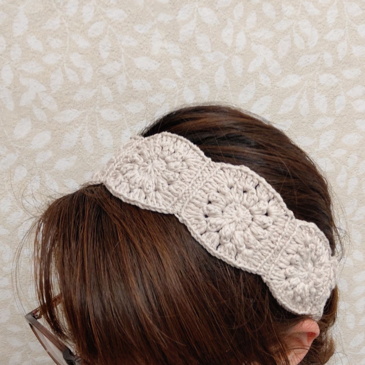 今回は、人気の花のモチーフ編みで、ヘアバンドを作りました!