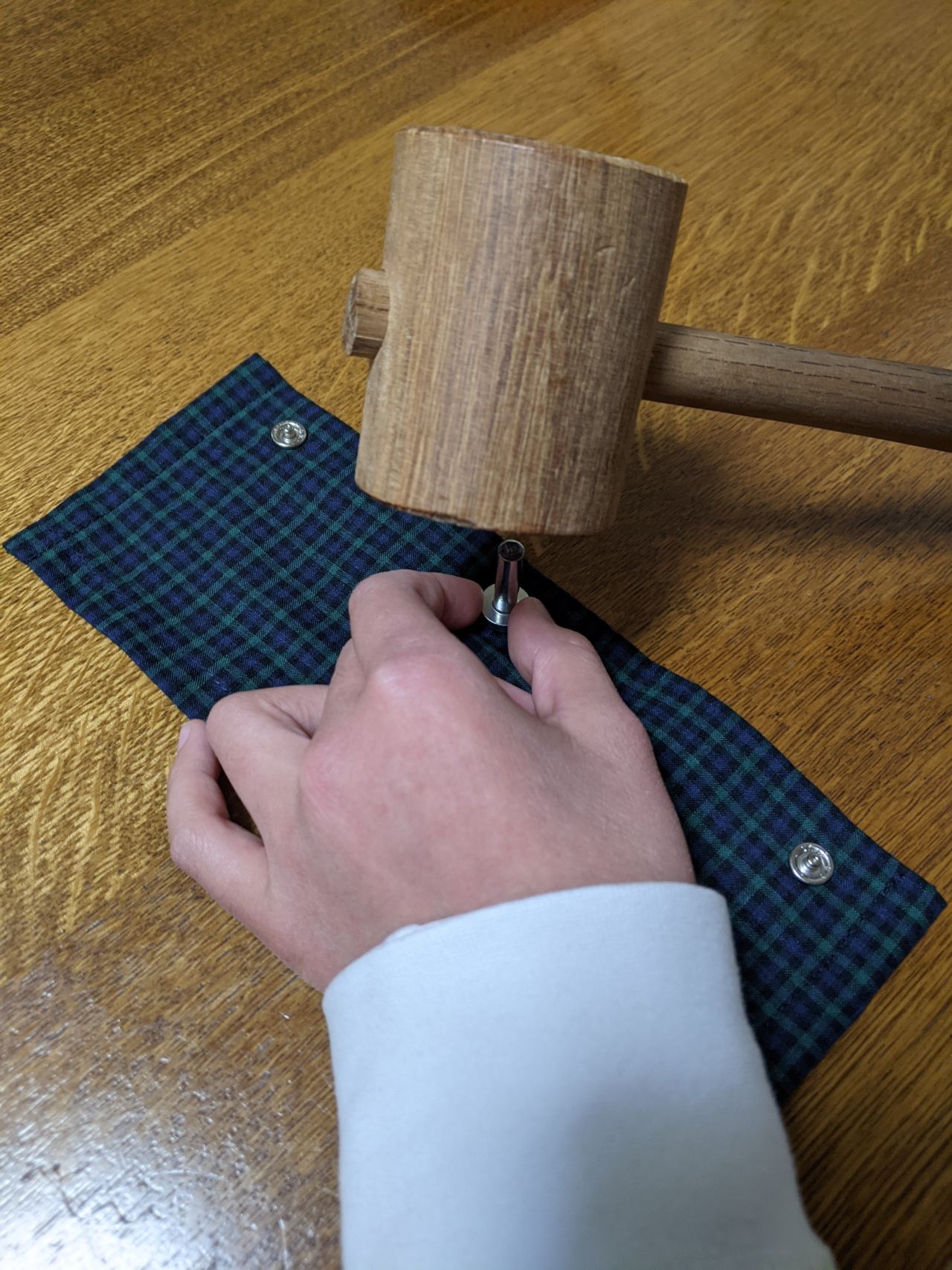 打ち具を片手に持って、木槌を垂直にたたくのがちょっと難しいかもしれません、、